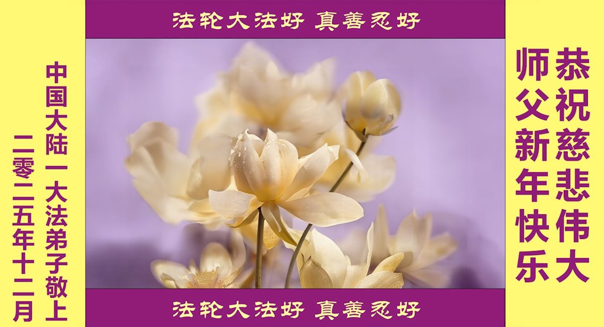 2026年馬上就要到了,值此新年來臨之際,我和家人一起祝師父新年快樂!同時感謝師父的慈悲救度,我也會在接下來的工作、學習、生活中更加努力的做好人、做好事,牢記真善忍。再次向師父致以最誠摯的問候和最衷心的祝願!