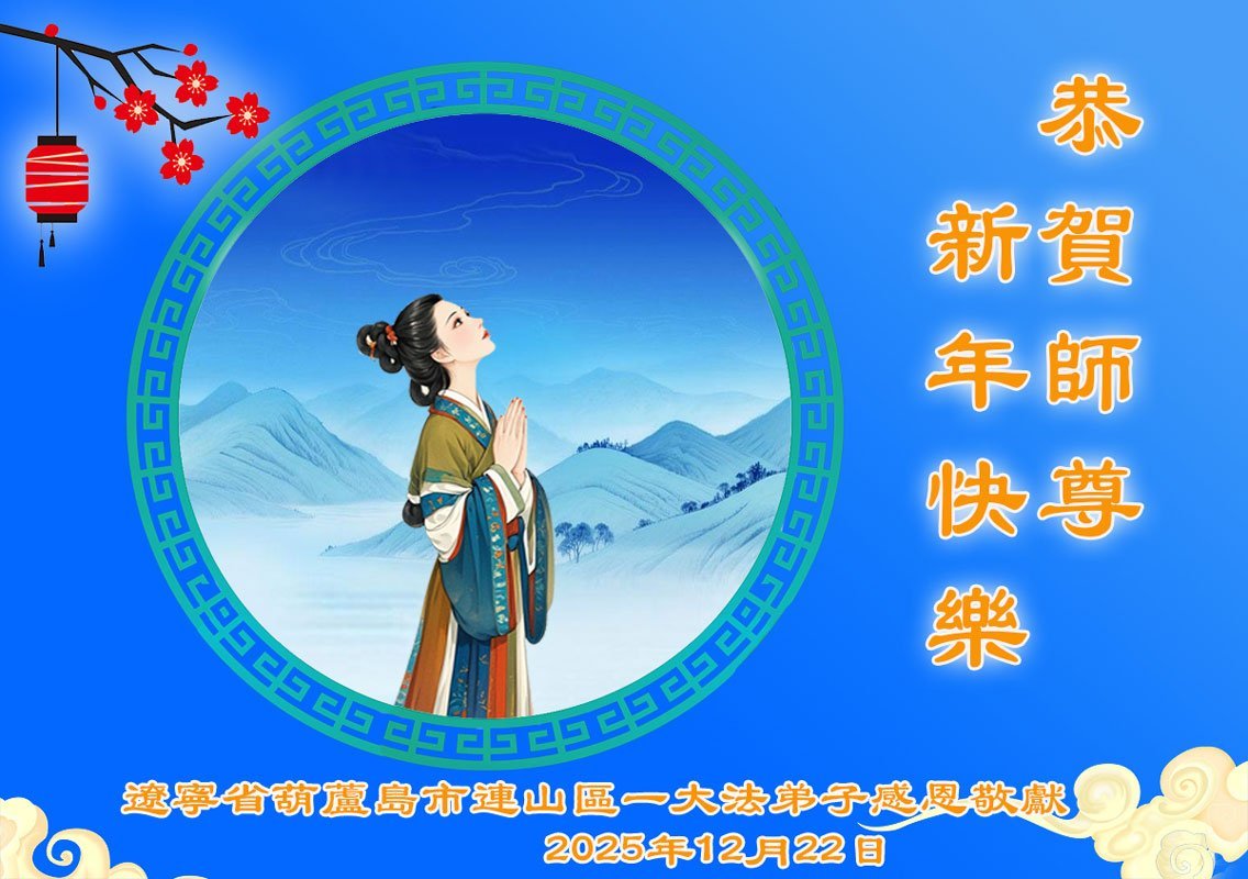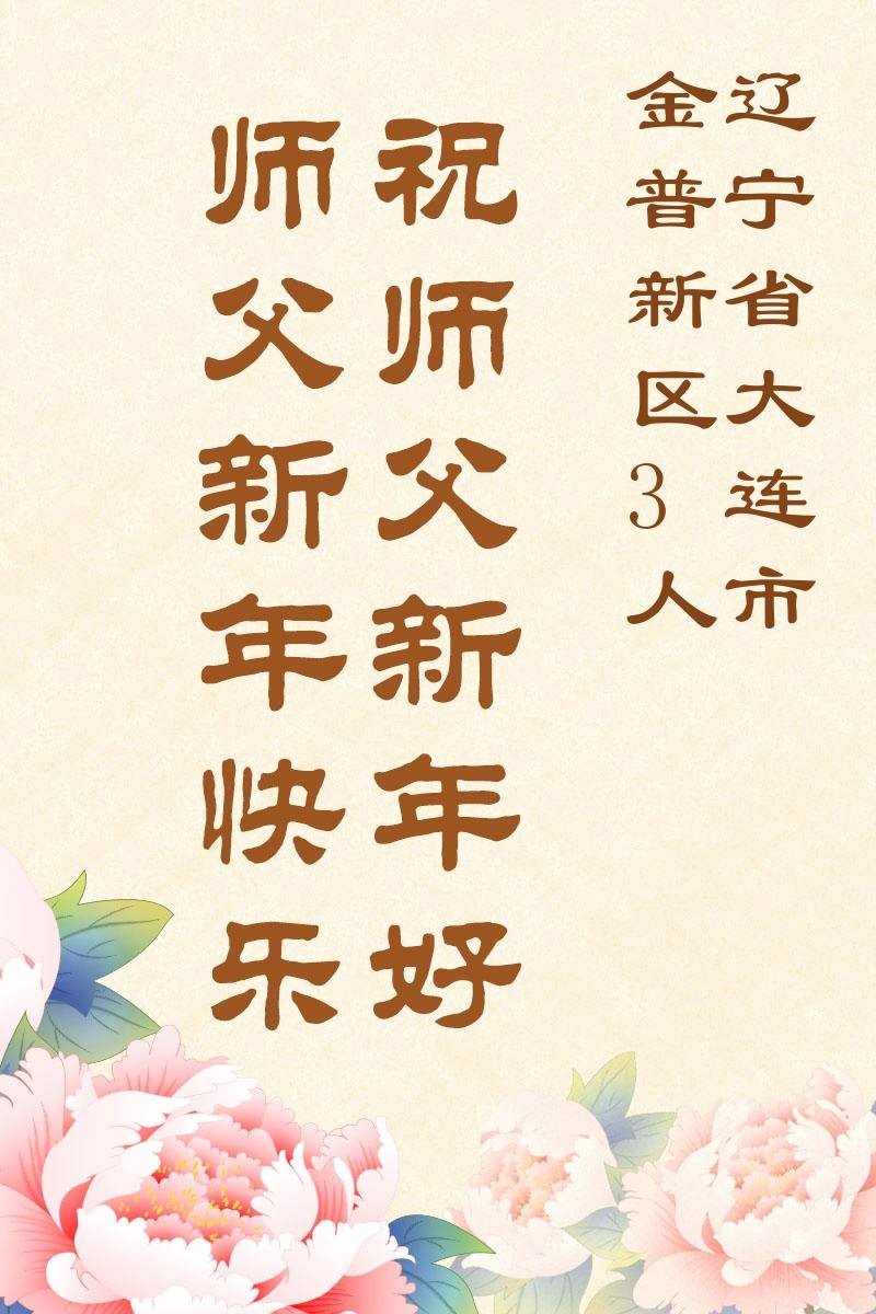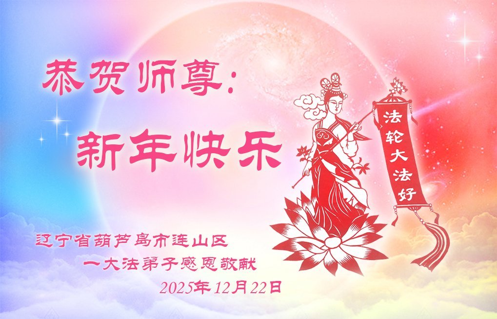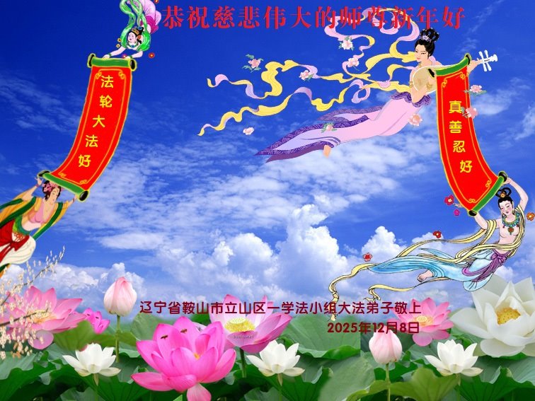 師尊新年好!弟子們遙拜師尊新年快樂!師尊辛苦了!弟子們感恩師尊的慈悲苦度!在新的一年裏,弟子們一定更加努力的做好三件事,堅定的維護大法,跟隨師尊堅修到底。