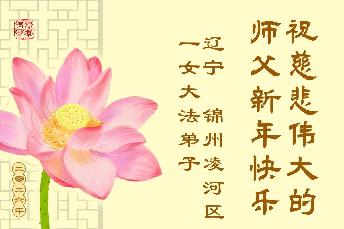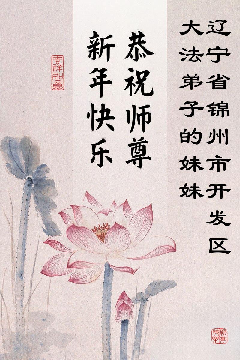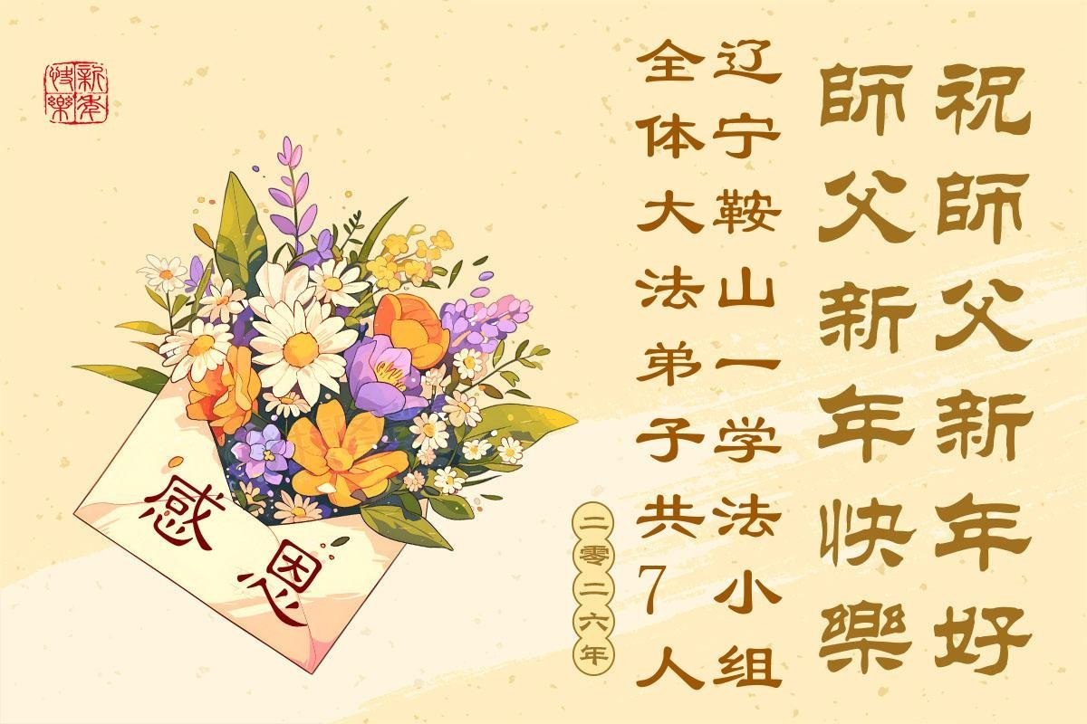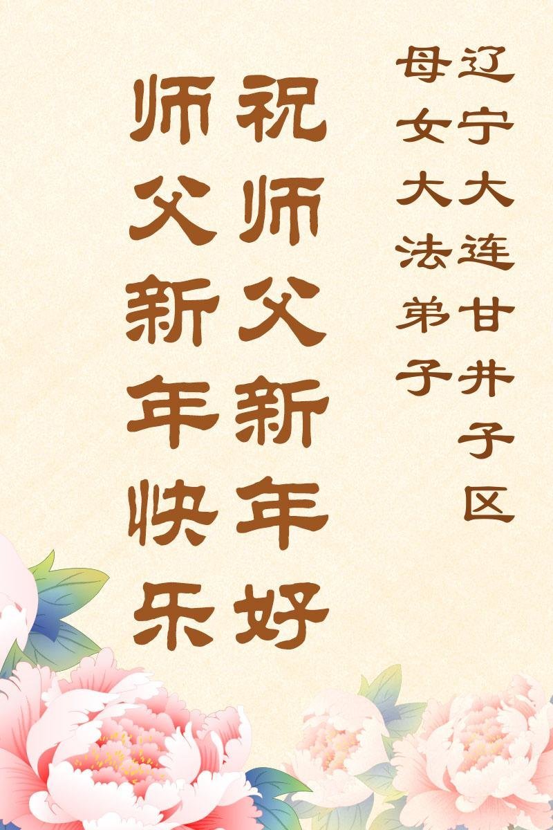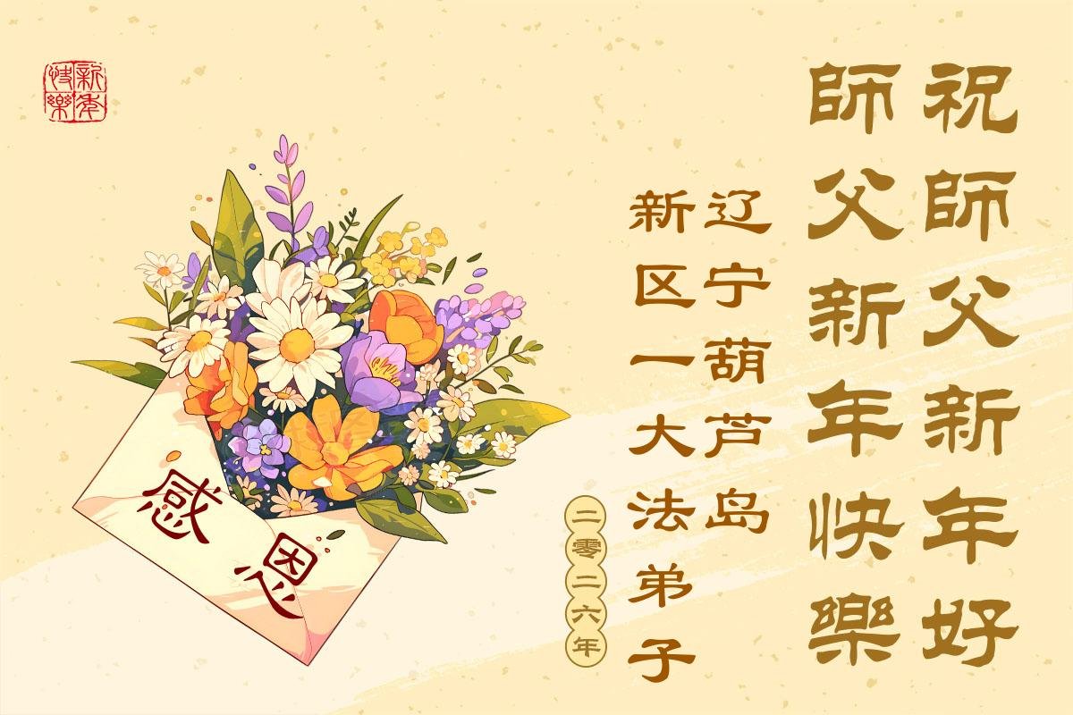 恭祝師尊新年快樂!師尊您辛苦了!在今後的修煉日子裏,多學法心中裝著法,用法對照時時向內找,去除人的執著,純淨的做好三件事,跟上正法進程。天天有總結日日有提高,圓滿回升返家園,叩謝師尊看護著弟子及家人。