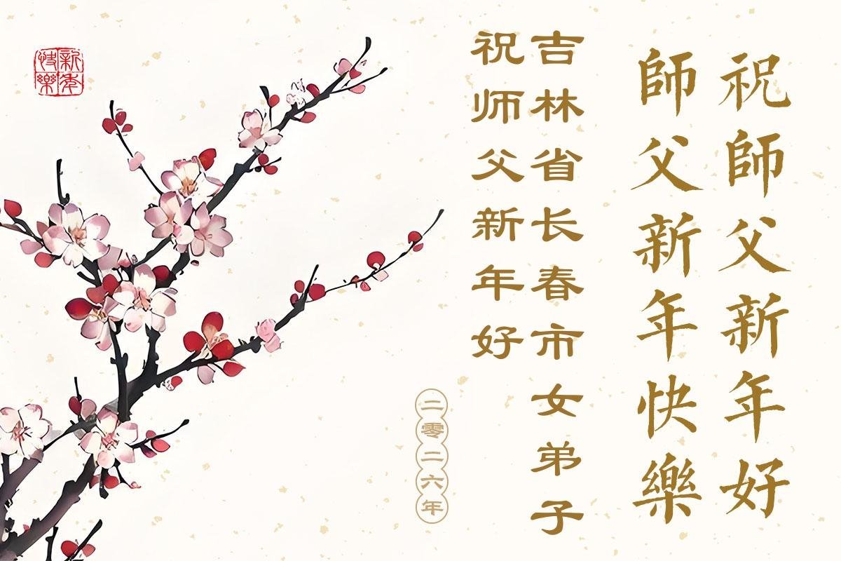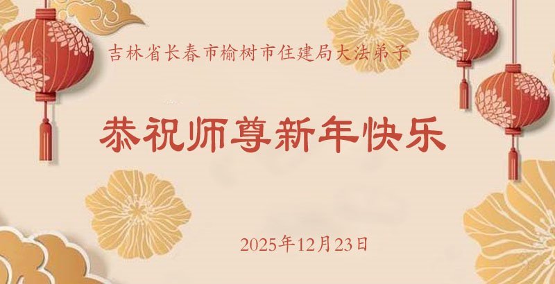 尊敬的師父您好!您為弟子們操盡了心,您辛苦了!新年快到了,祝您新年快樂!我要聽您的話,記住您的話,努力做好自己應該做的,決不辜負您的慈悲救度。我要加快修煉的腳步,努力跟上您的正法進程,早日回家。