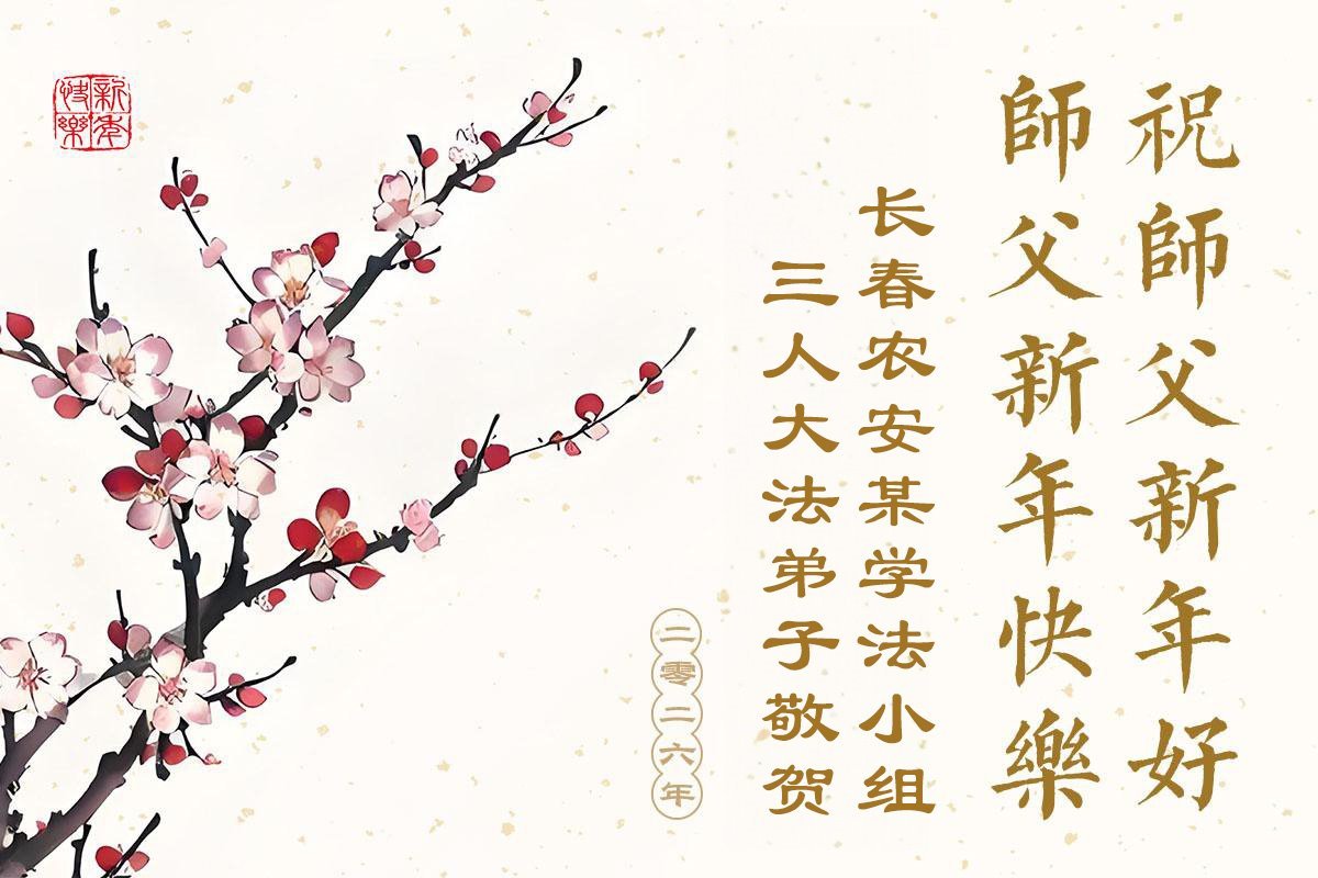 長春大法弟子一家三口恭祝師尊新年好!師父好!師父辛苦了!弟子一定聽師父的話,做好三件事,圓滿隨師還。謝謝師父!