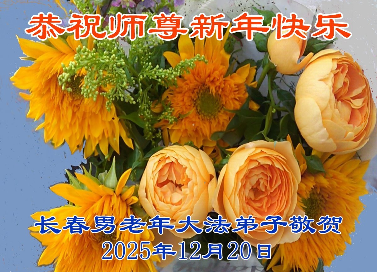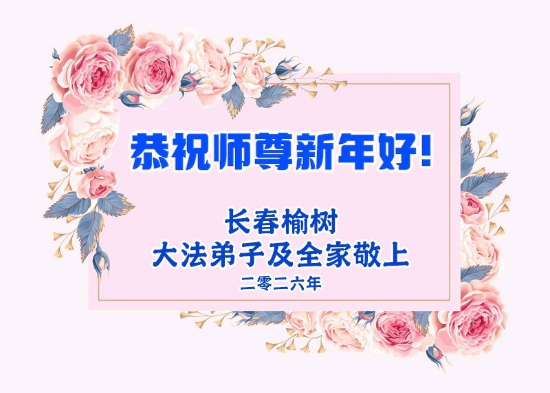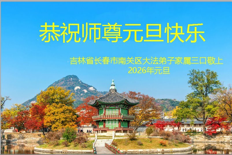 慈悲偉大的師父您好!在您為眾生的巨大承受與付出中,又迎來了新的一年。弟子全家無比感恩師父的保護與救度!恭祝慈悲偉大的師父新年快樂!師父您辛苦了!謝謝師父!弟子會謹遵師父教誨,做好三件事。越最後越堅定、越不放鬆,正念越足。抓緊時間修好自己,兌現誓約,多救人,不讓師尊與眾生失望。