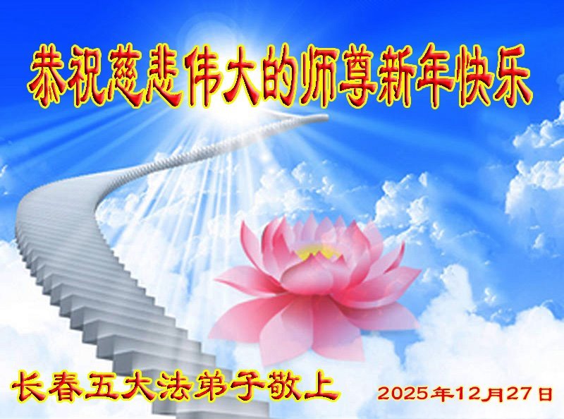 在新年到來之際,弟子對師父無限感恩!弟子只有堅定信師信法,精進實修,做好三件事,努力完成史前誓約、多救人,圓滿隨師父回家。