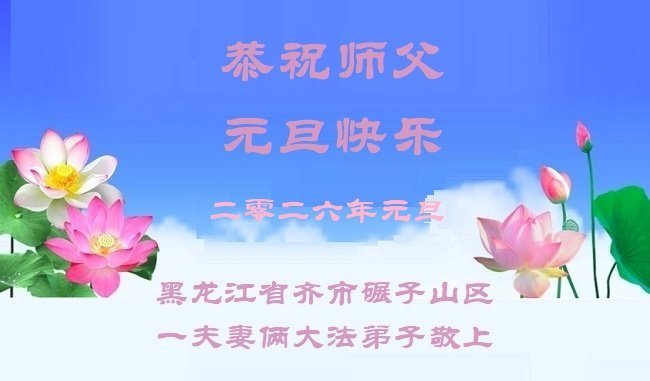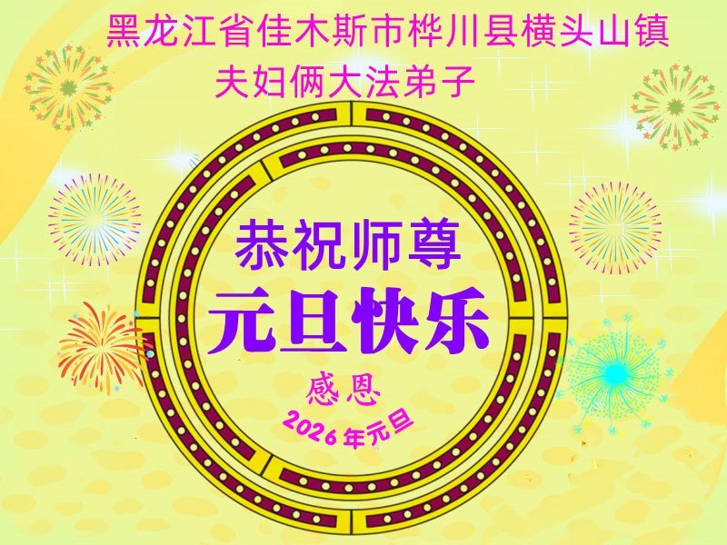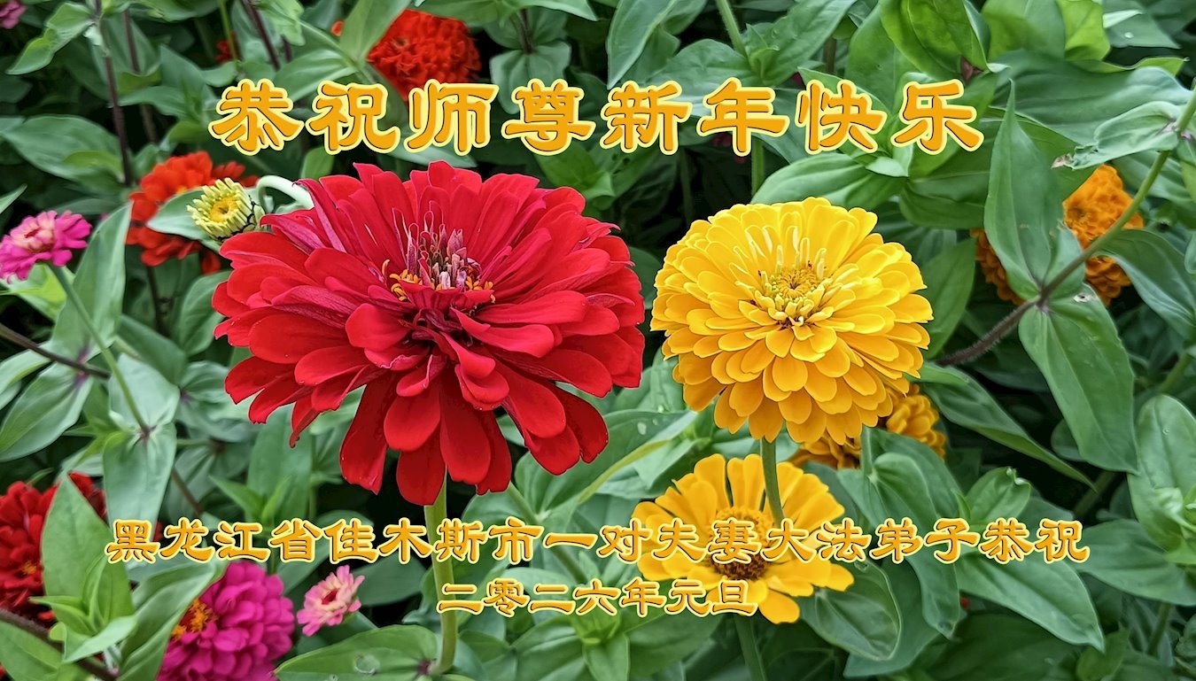 黑龍江省佳木斯市一對夫妻大法弟子恭祝師尊新年快樂!