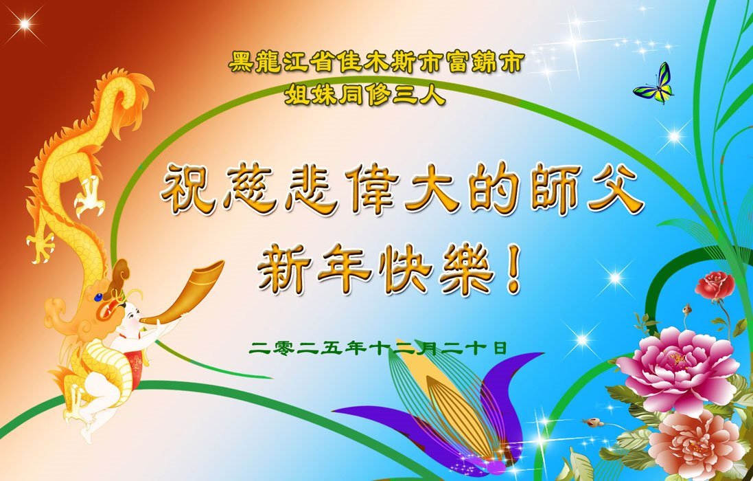 黑龍江省佳木斯市大法弟子親人恭祝大法師父新年快樂!