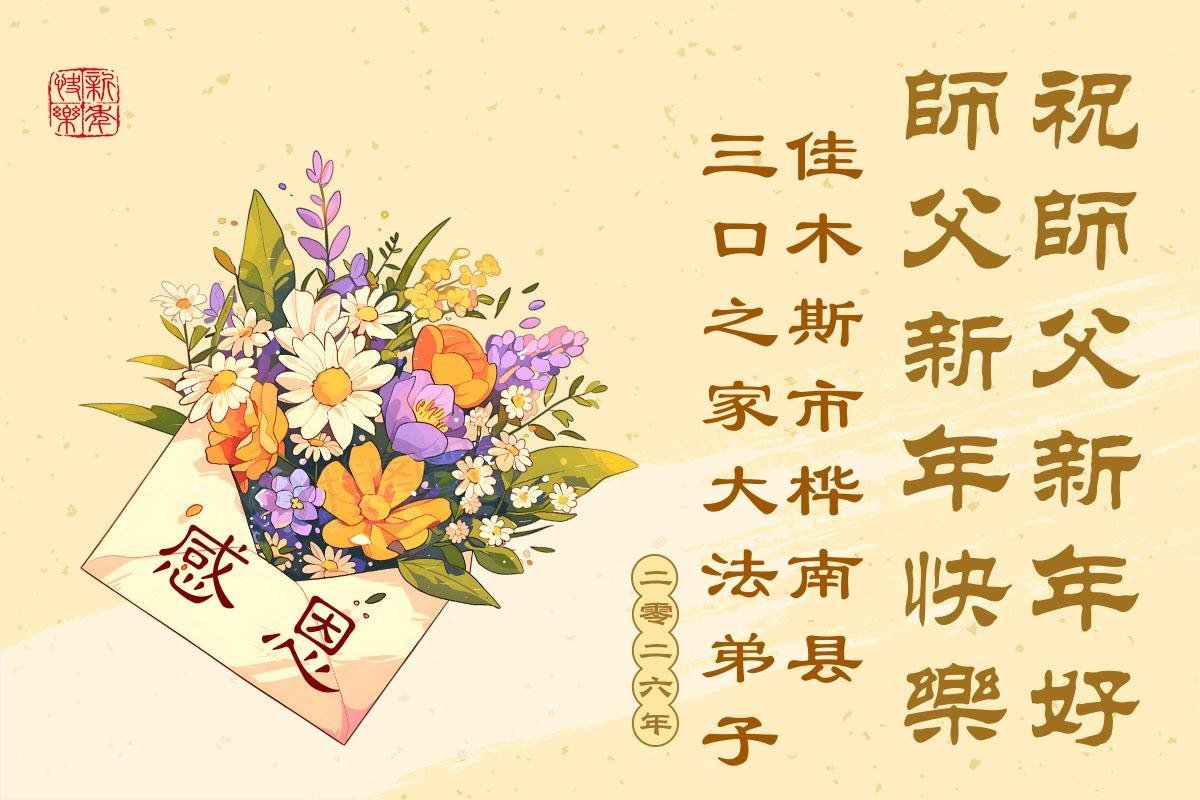感謝師父對弟子的慈悲看護,師父您辛苦了!弟子一定精進實修,讓師父少操心。元旦即將來臨,弟子和不修煉的家人一起恭祝師父新年快樂!