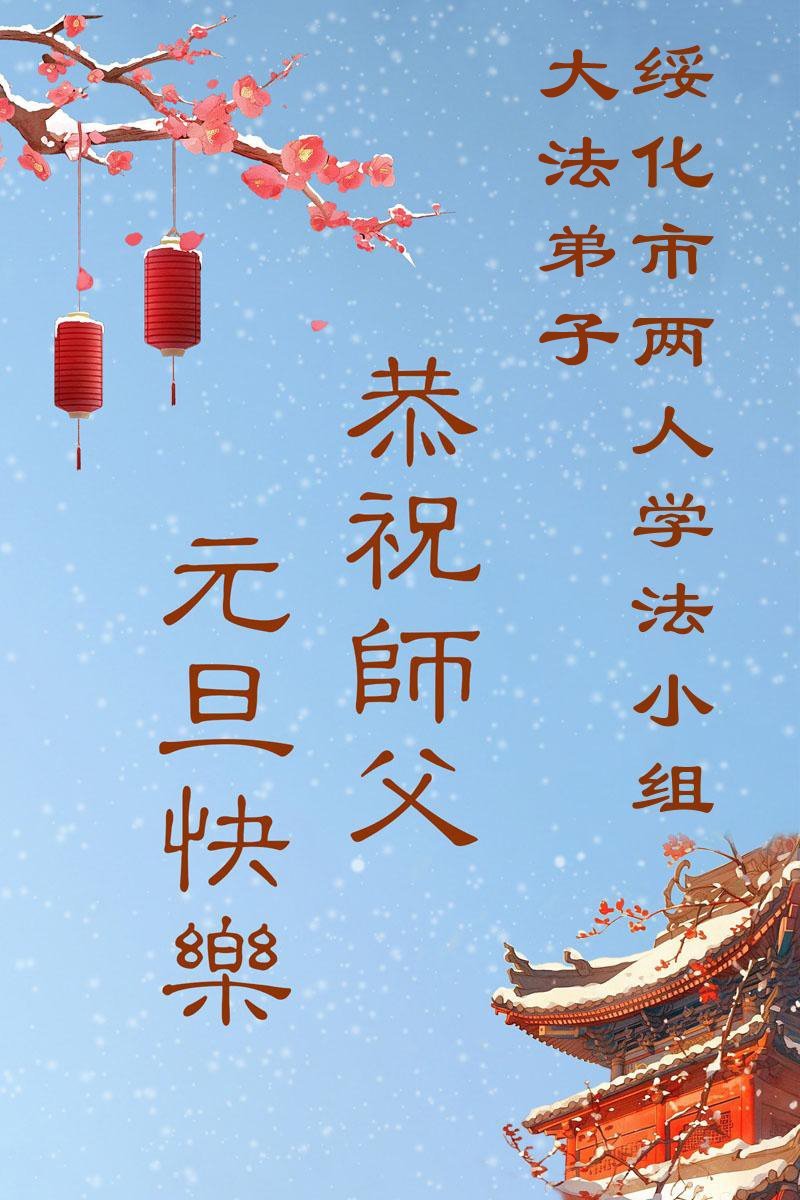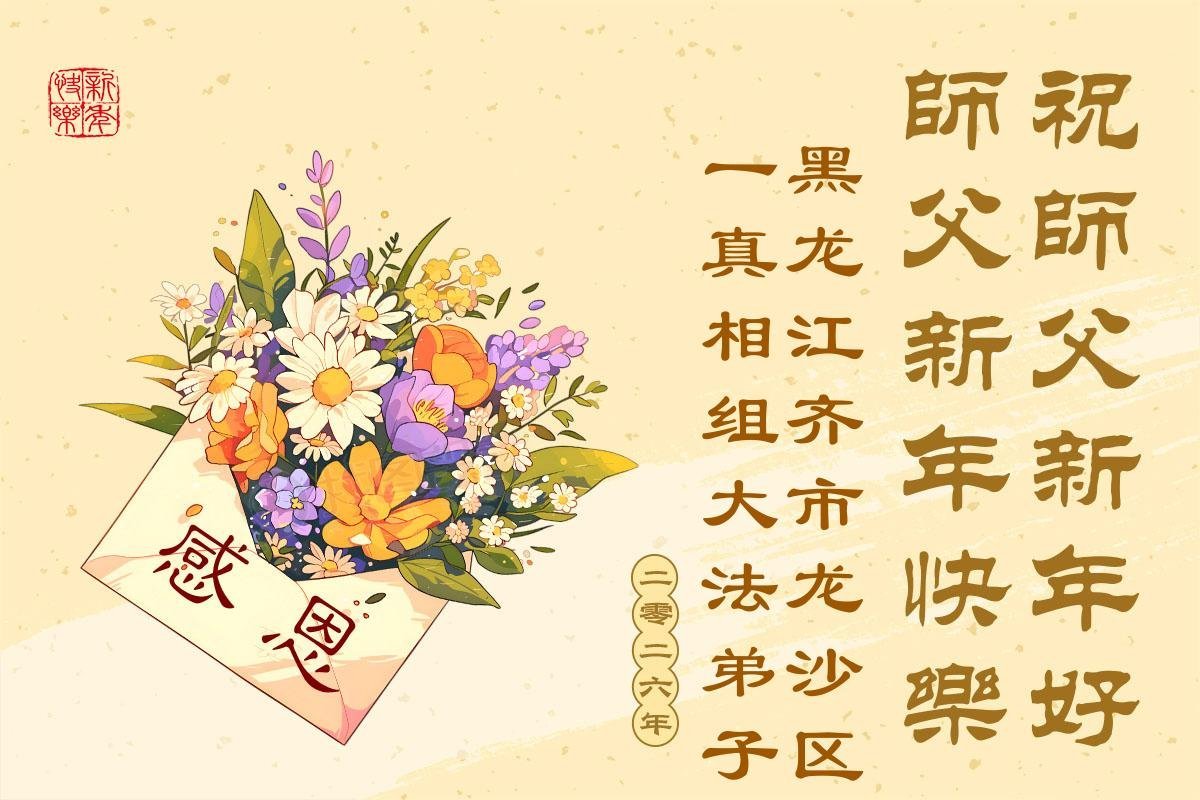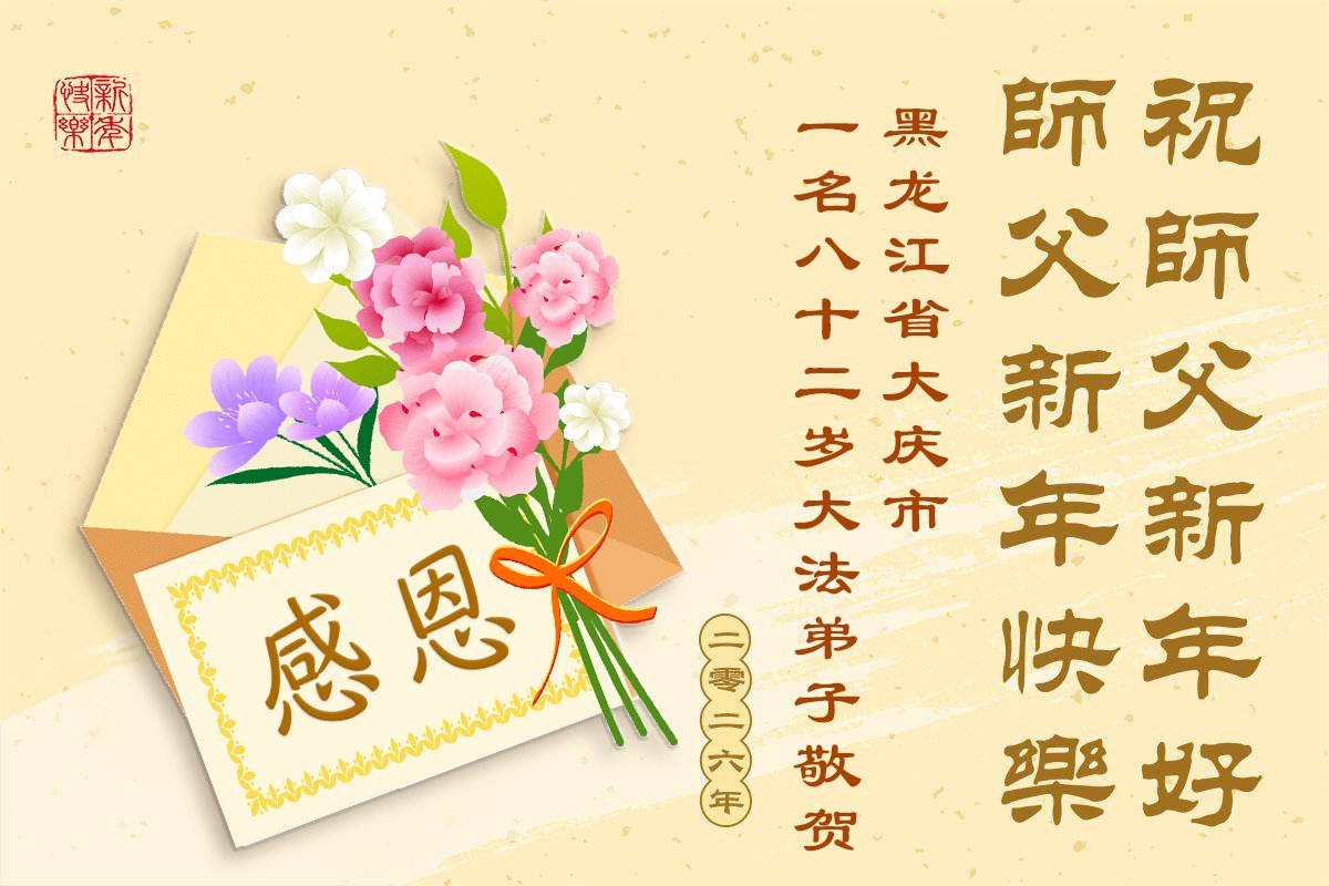 恭祝大法師父新年快樂!感恩大法師父對我們全家的護佑!以後我們兒女們會更加支持母親做好三件事,以報答大法師父的恩賜!叩謝大法師父!