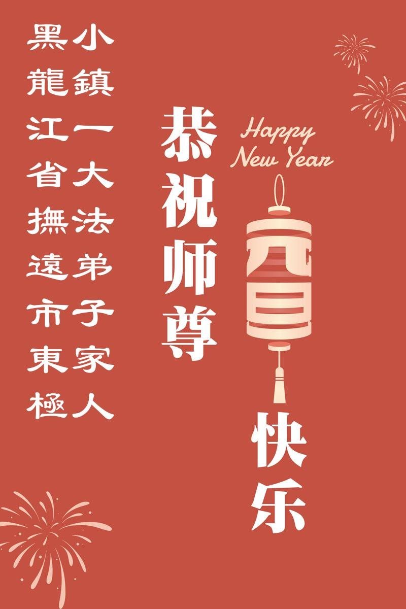 恭祝師尊新年好!感恩師尊的慈悲救度,師尊辛苦了!新的一年裏,弟子們會比學比修,珍惜師尊給延續來的時間,多學法多背法修好自己多救人。為成為師尊的合格的弟子努力,讓師尊少操心。叩謝師尊!