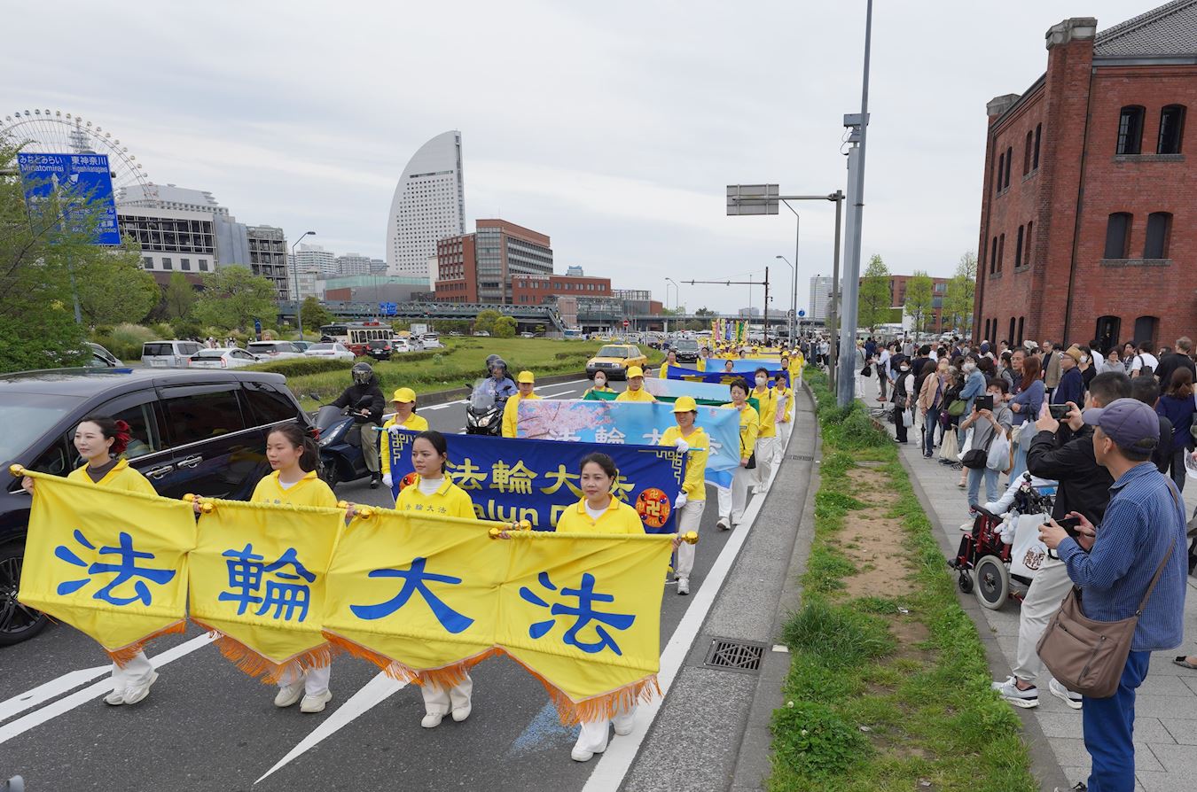 本次集會上,多位日本議員、大陸維權人士,來到現場發表演講、錄音發言方式表達對法輪功的支持,並譴責中共活摘法輪功學員器官和所犯下的反人類罪行。反迫害集會結束後,下午一點半, 浩浩蕩蕩的遊行隊伍從櫻木町站前廣場出發,途徑紅磚倉庫、中華街等觀光勝地,吸引了大量的民眾駐足觀看。