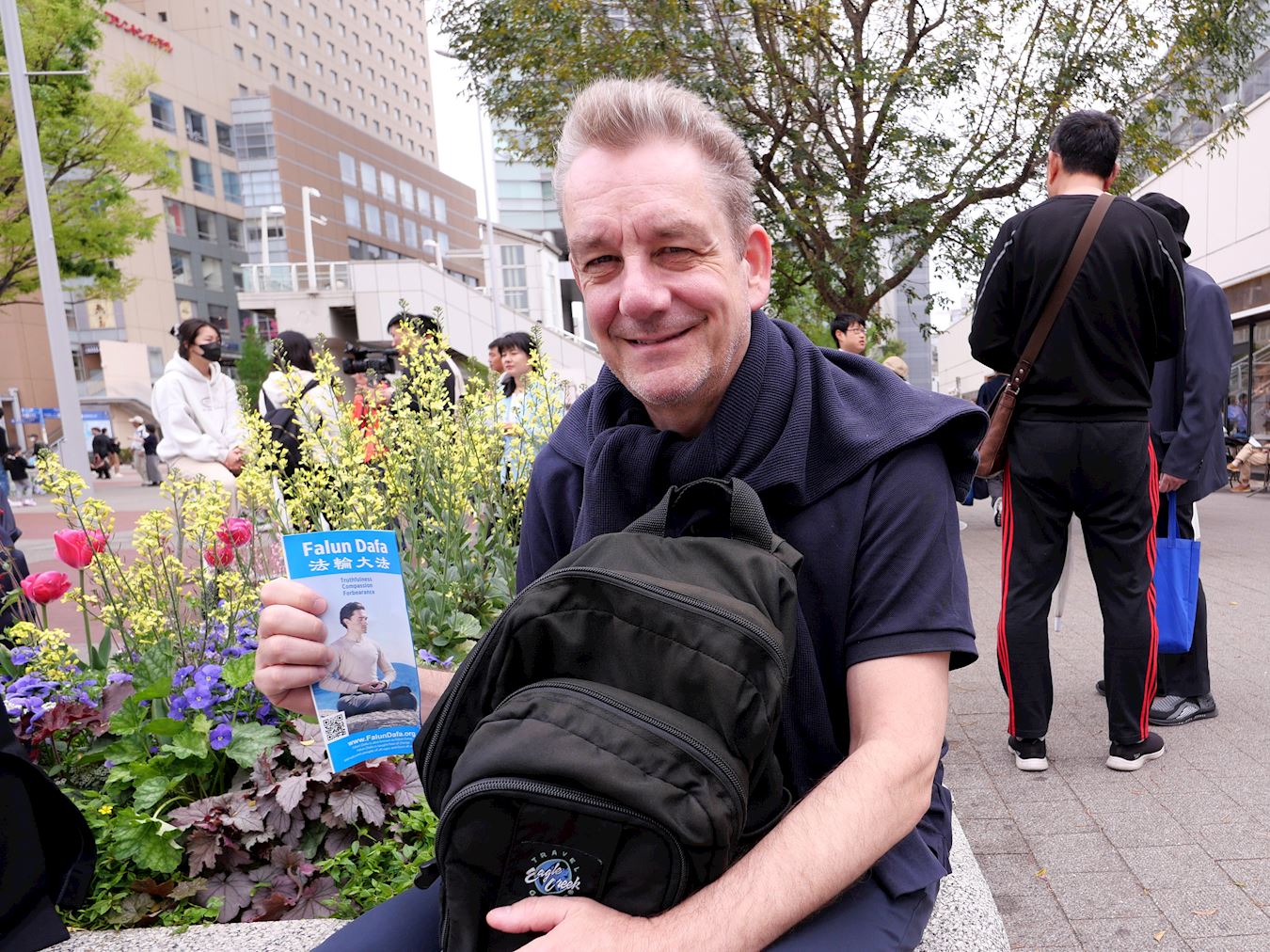 來自瑞士的弗拉普茲﹒澤爾(Frapz Xauer)先生表示支持法輪功學員,並說道:「我真心祈禱制止中國迫害法輪功,以及制止活摘器官的活動取得成功。」他還談到「真、善、忍」對人類而言極其重要、是應當傳承下去的價值觀。如果人們都能朝著這些價值觀努力,相信這個世界會變得更加和平。