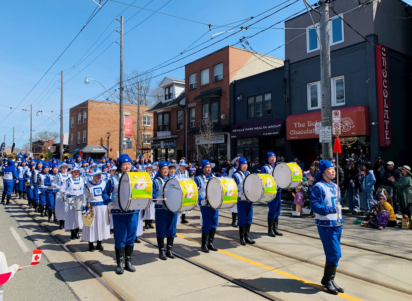 ![]() 圖1~3:法輪功學員組成的天國樂團和腰鼓隊受邀參加多倫多復活節遊行 |