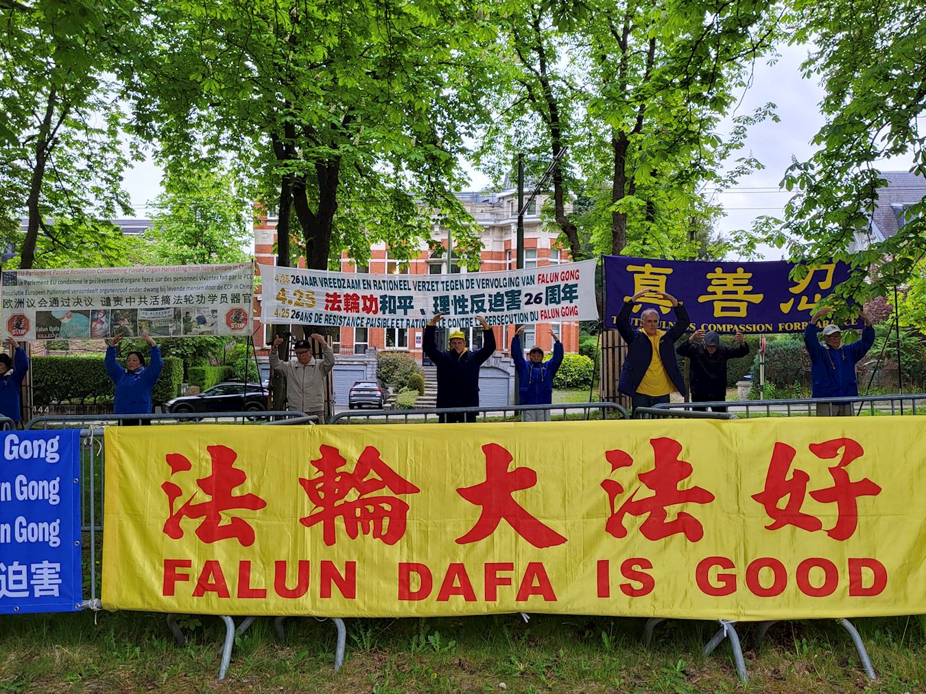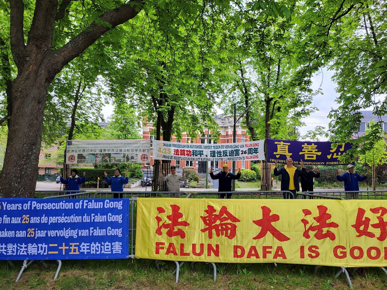 ![]() 圖1~2:部份比利時法輪功學員在中使館前紀念法輪功「四﹒二五」和平、理性維護信仰自由 |