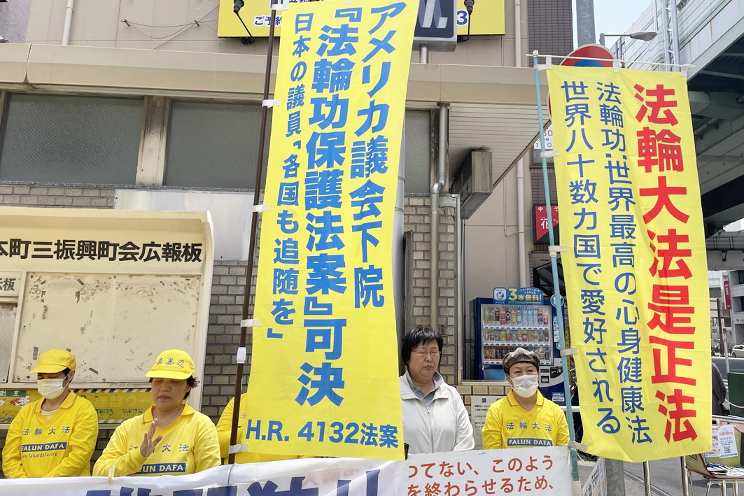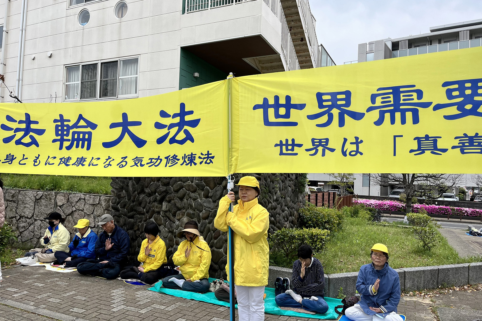 ![]() 圖6:四月二十五日白天,關西地區部份法輪功學員在大阪中領館前和平請願。 |