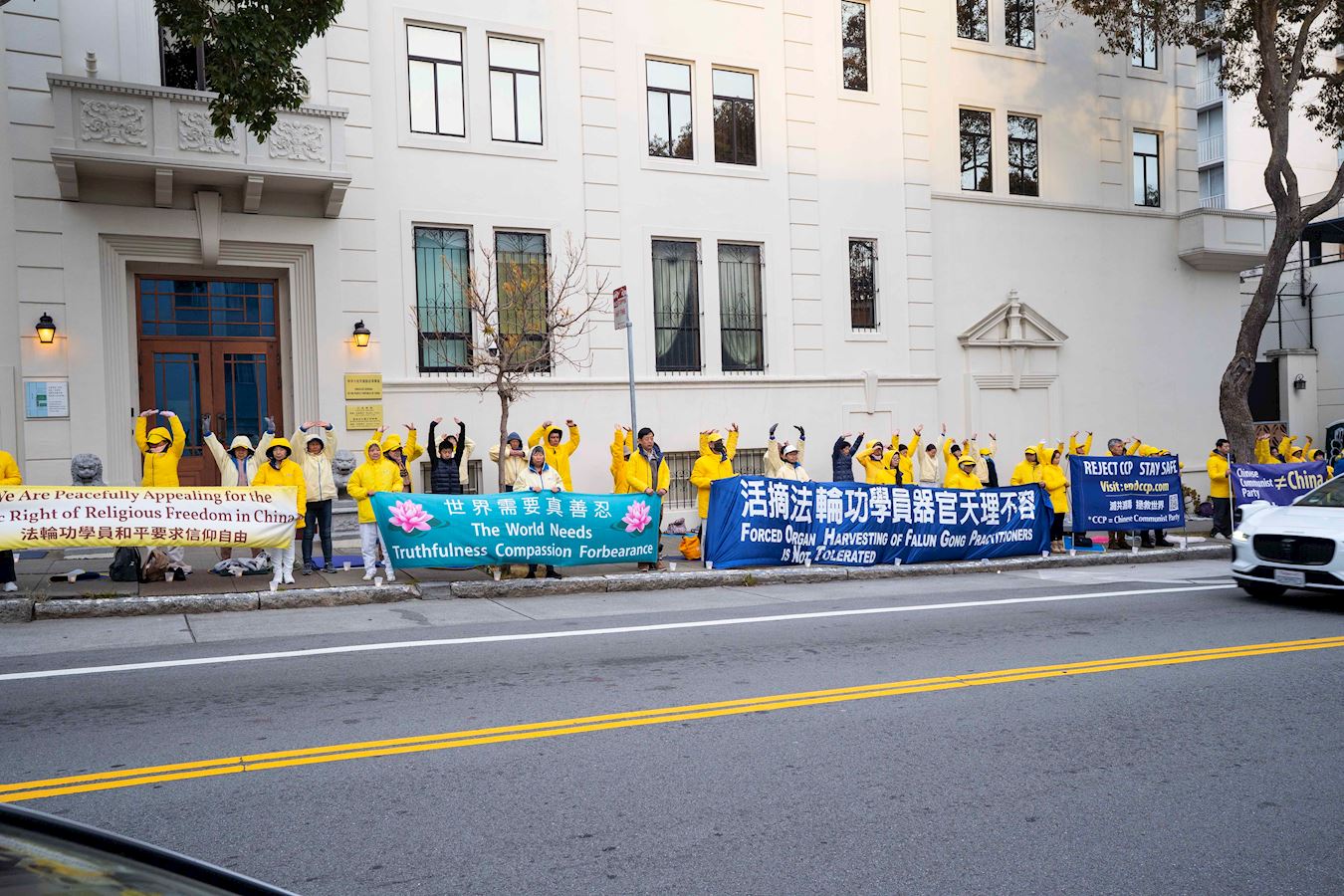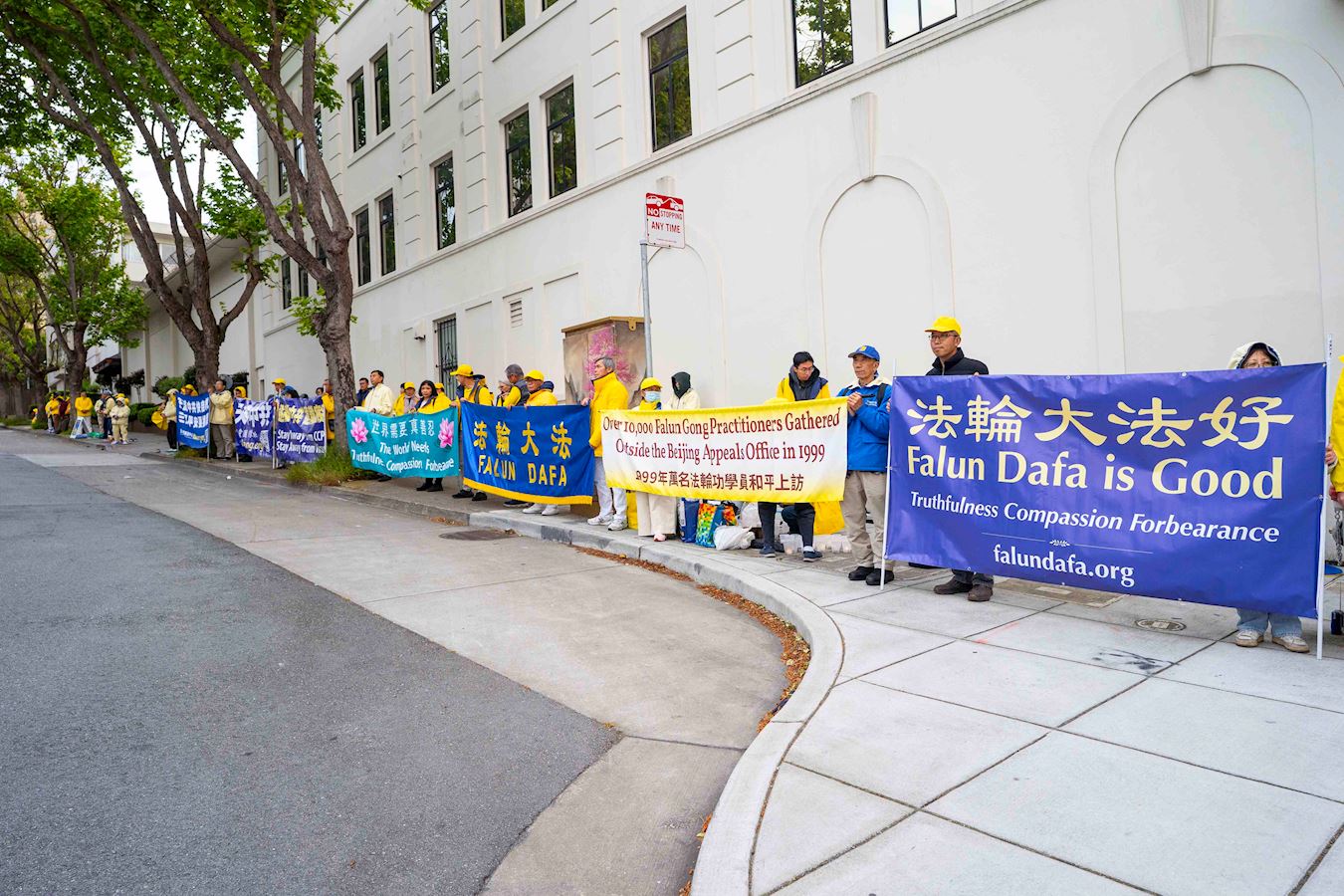 ![]() 圖1~5:二零二五年四月二十五日,舊金山灣區的法輪功學員聚集在舊金山的中領館前,紀念四‧二五和平上訪二十六週年。 |
