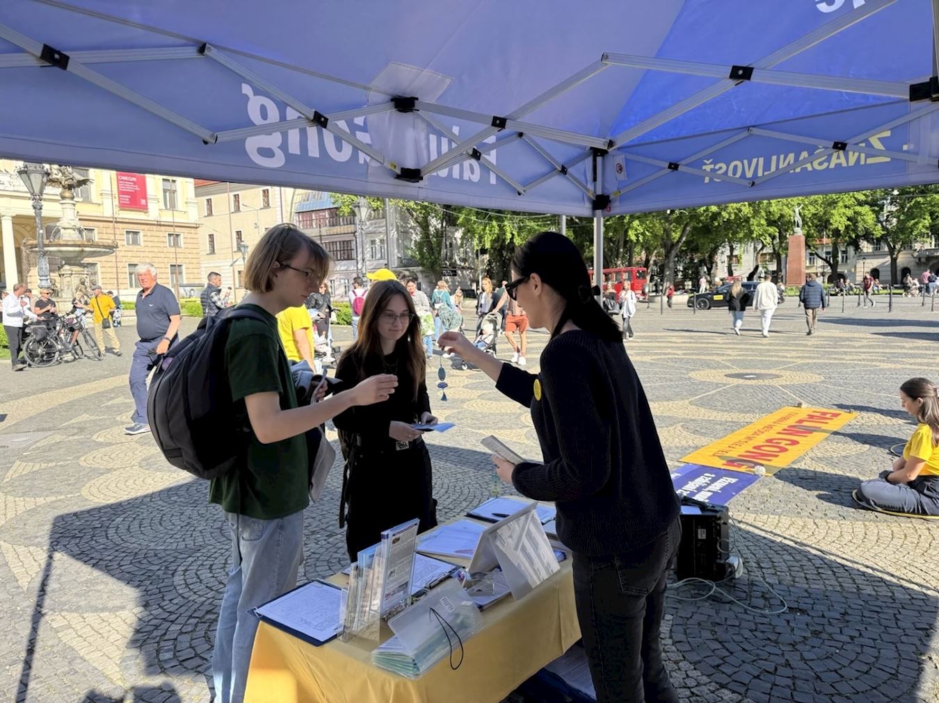 伊娃(Iva)和阿萊娜(Alena)都是幼兒園教師,她們在真相展位前停下並認真閱讀了真相資料,兩人驚喜的發現法輪大法的價值觀與她們的價值觀是相通的。阿萊娜說:「我們教育孩子們從小就要知道真、善、忍。」