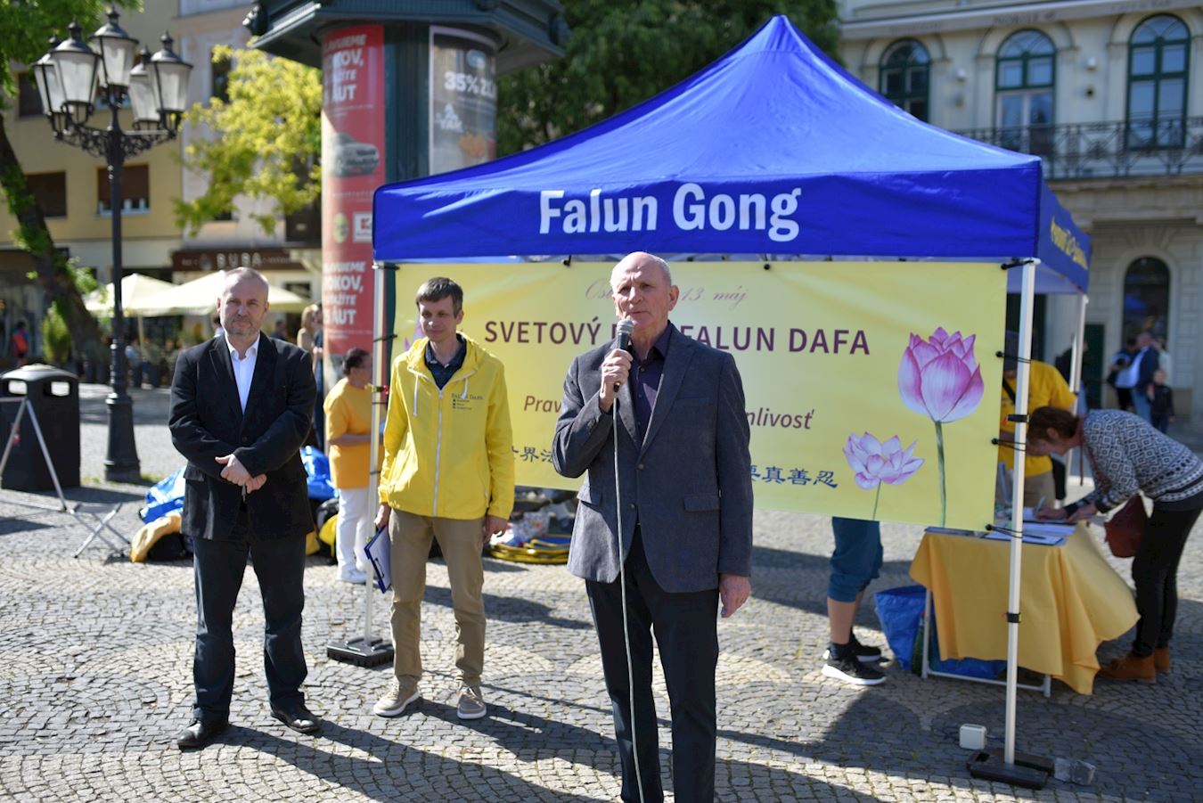 斯洛伐克國家議會成員、異議人士弗蘭蒂思科﹒米克洛什科(František Mikloško)支持法輪功學員向公眾介紹大法的真相。「你們展示了自己的神性,這是你們所熱愛、在其中生活的神性,你們沒有影響到任何人,也不會壓迫任何人。」 米克洛什科說:「請堅持你們的信念,堅持你們的理想」,「請允許我向你們表達最真誠的聲援。」