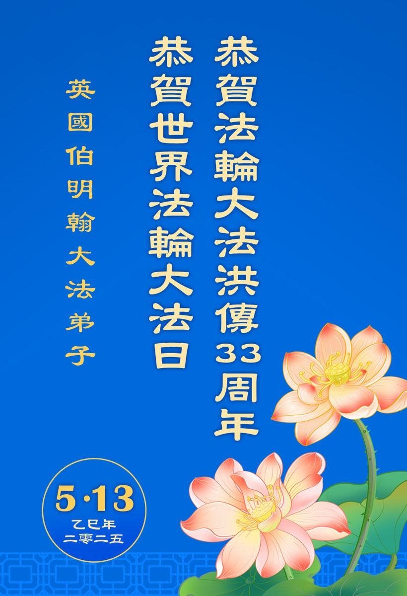英國伯明翰大法弟子恭賀世界法輪大法日!