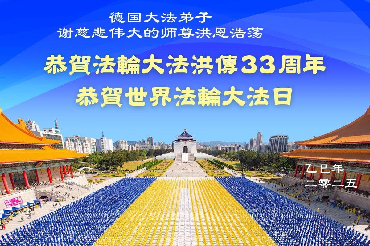 德國一清晨學法小組大法弟子恭賀世界法輪大法日暨師尊華誕!