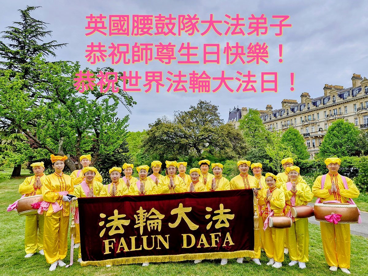 英國一學法小組大法弟子同慶世界法輪大法日!恭祝師尊華誕!