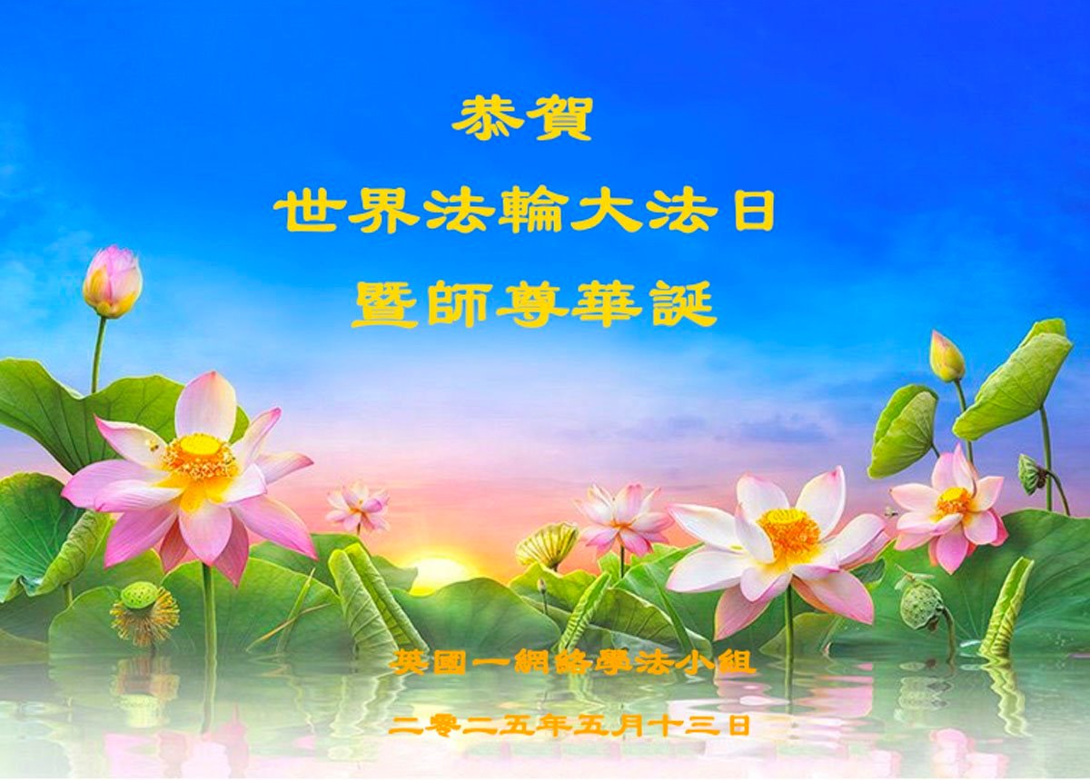 英國一網絡學法小組大法弟子恭祝世界法輪大法日暨師尊華誕!