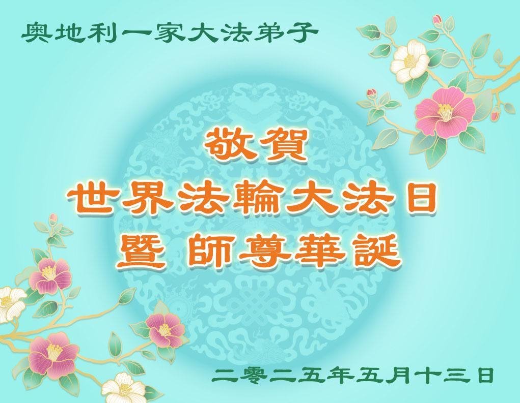 奧地利一大法弟子全家恭賀世界法輪大法日暨師尊生日快樂!
