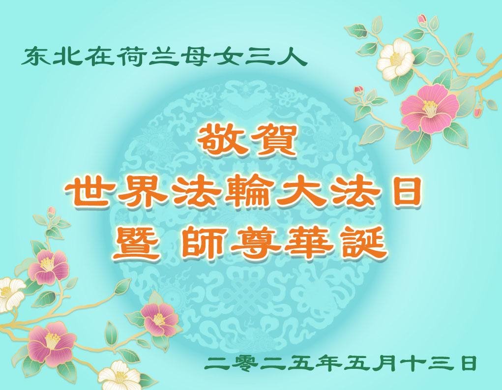 長春在荷蘭母女三人大法弟子恭祝師父華誕!恭賀世界法輪大法日!