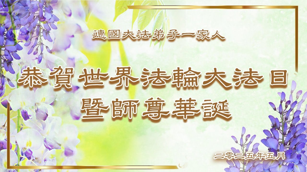 德國大法弟子一家人恭賀世界法輪大法日暨師尊華誕!