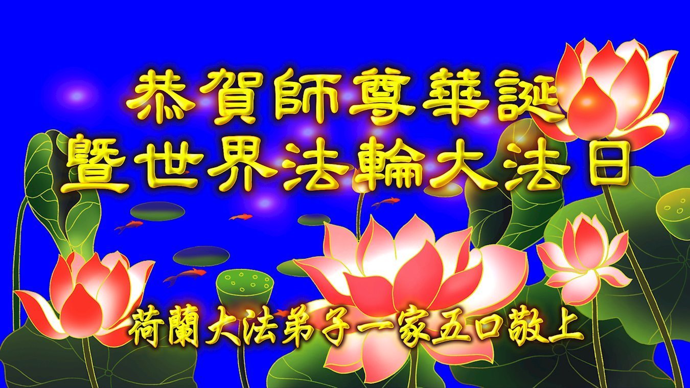 荷蘭大法弟子一家人恭祝師尊生日快樂!恭賀世界法輪大法日!