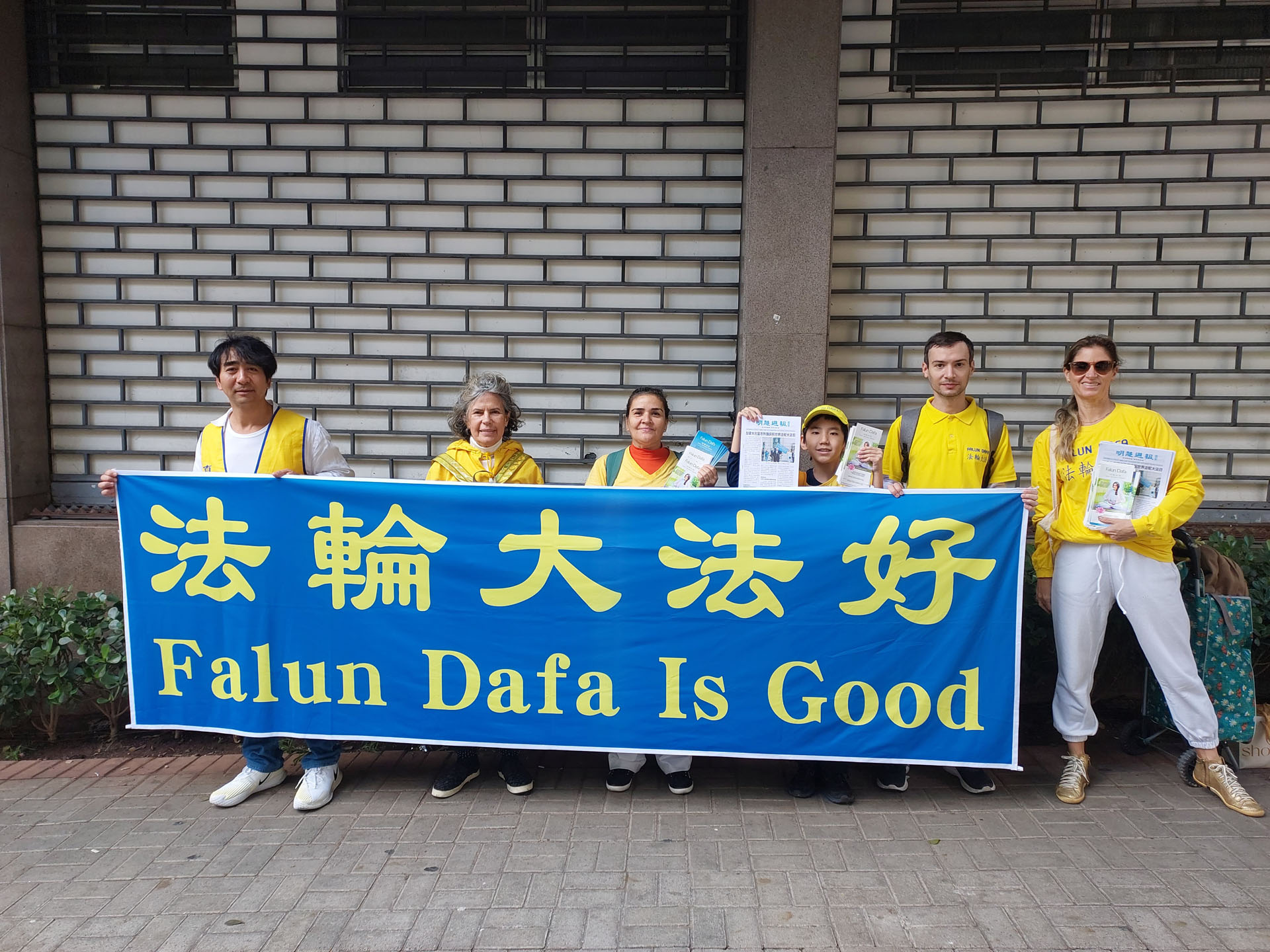 在鬧市區看到法輪大法的橫幅,聽到寧靜祥和、悠揚的普度音樂,有些民眾會停下腳步上前詢問,也有的會主動接過傳單;周圍的華商在國外看到法輪大法,看到了對比和反差:法輪功在中國被禁止和迫害,然而卻在國外弘傳。