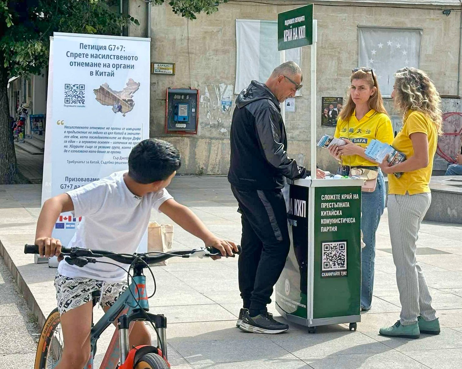 ![]() 圖1~3:二零二五年五月十三日,法輪功學員在普羅夫迪夫設置信息展位,向路人介紹法輪大法。 |