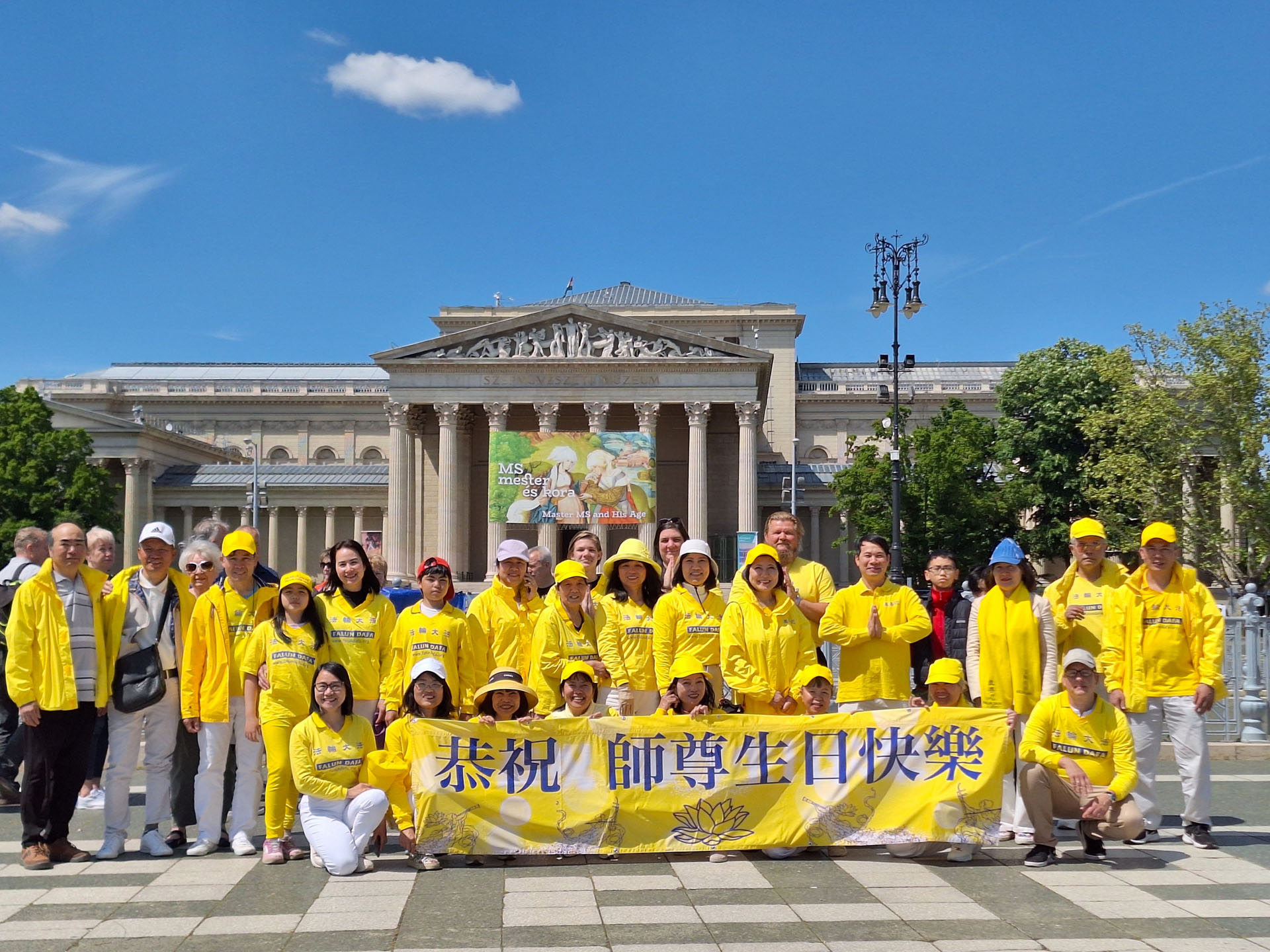 ![]() 圖3:匈牙利法輪功學員向李洪志先生表達生日祝福。 |