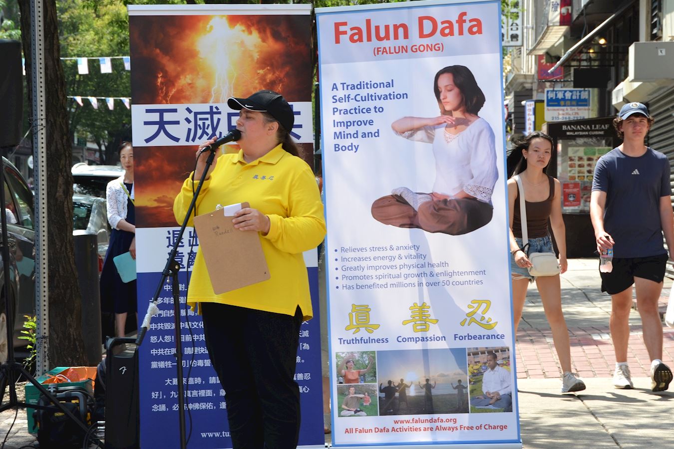 ![]() 圖4:法輪功學員在集會上發言譴責中共對法輪功的跨國迫害。 |