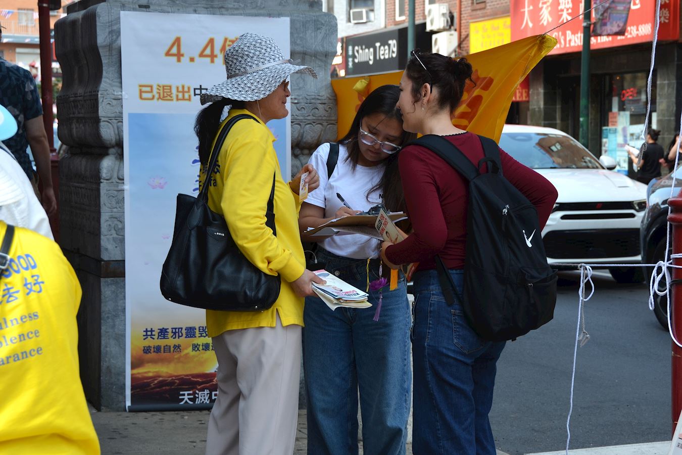 當天,有三十五名華人現場做了「三退」(聲明退出中共黨團隊組織)。