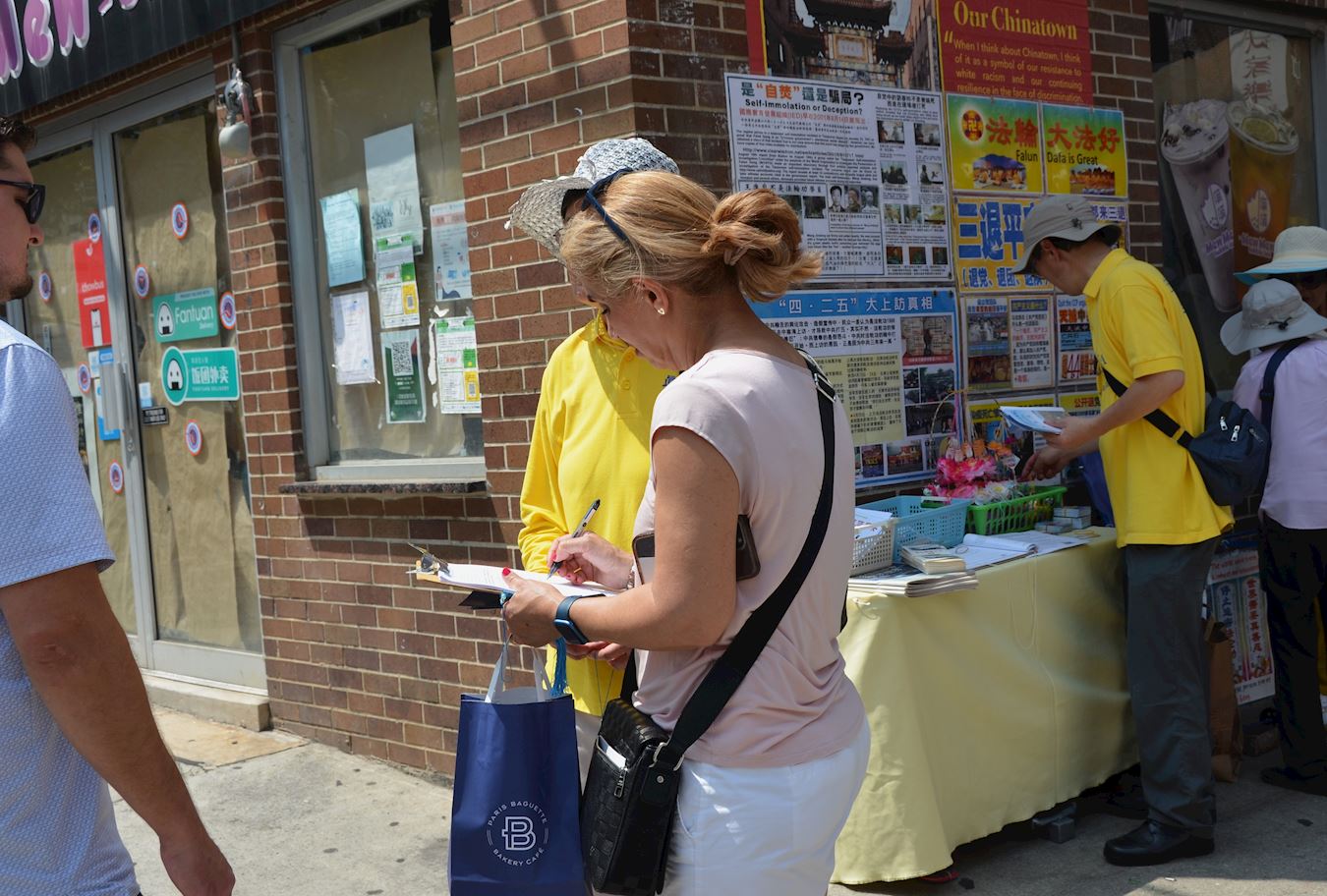 費城商店經理大衛﹒特拉維克(David Trawick)首次聽說迫害情況,震驚地說:「我剛聽說在中國發生的活摘器官事件,聽到這個消息時,我感到非常難過。」他計劃進一步了解真相。