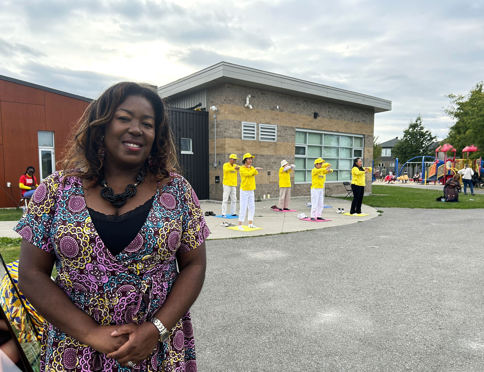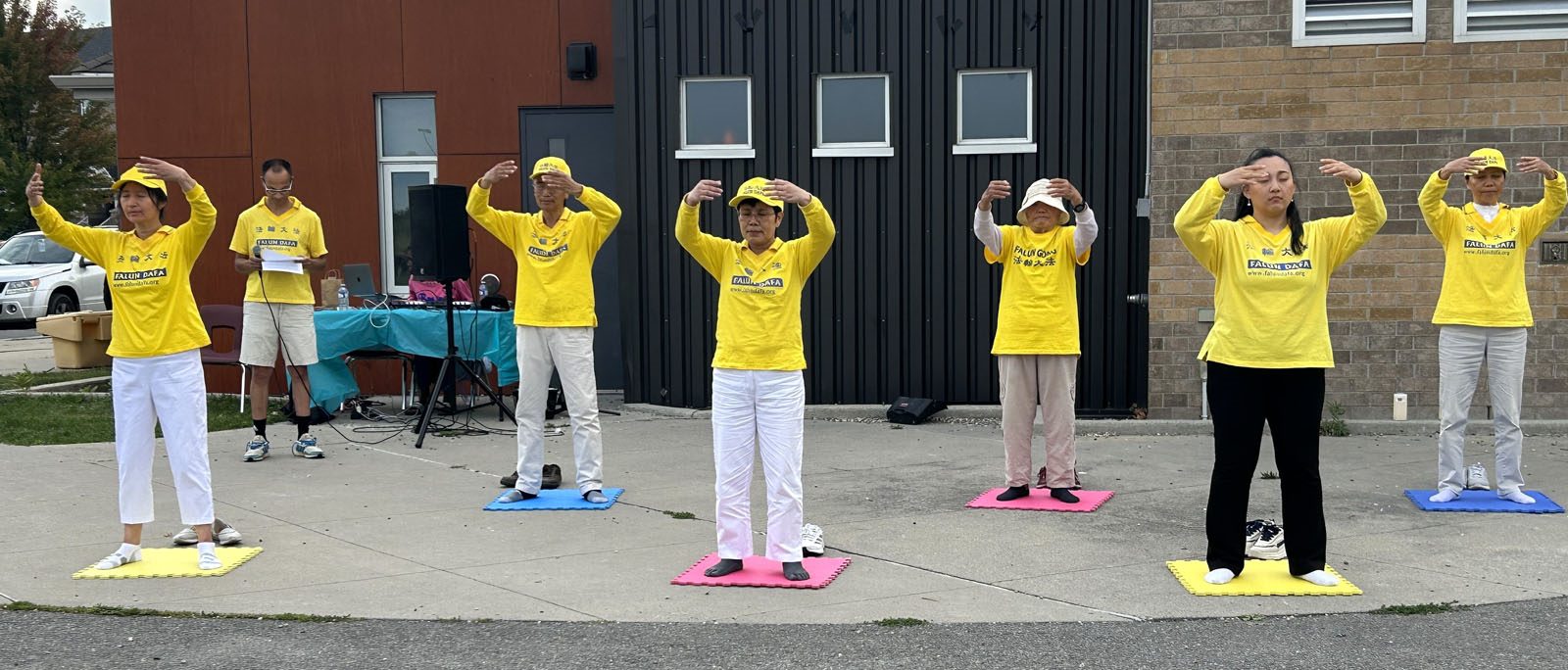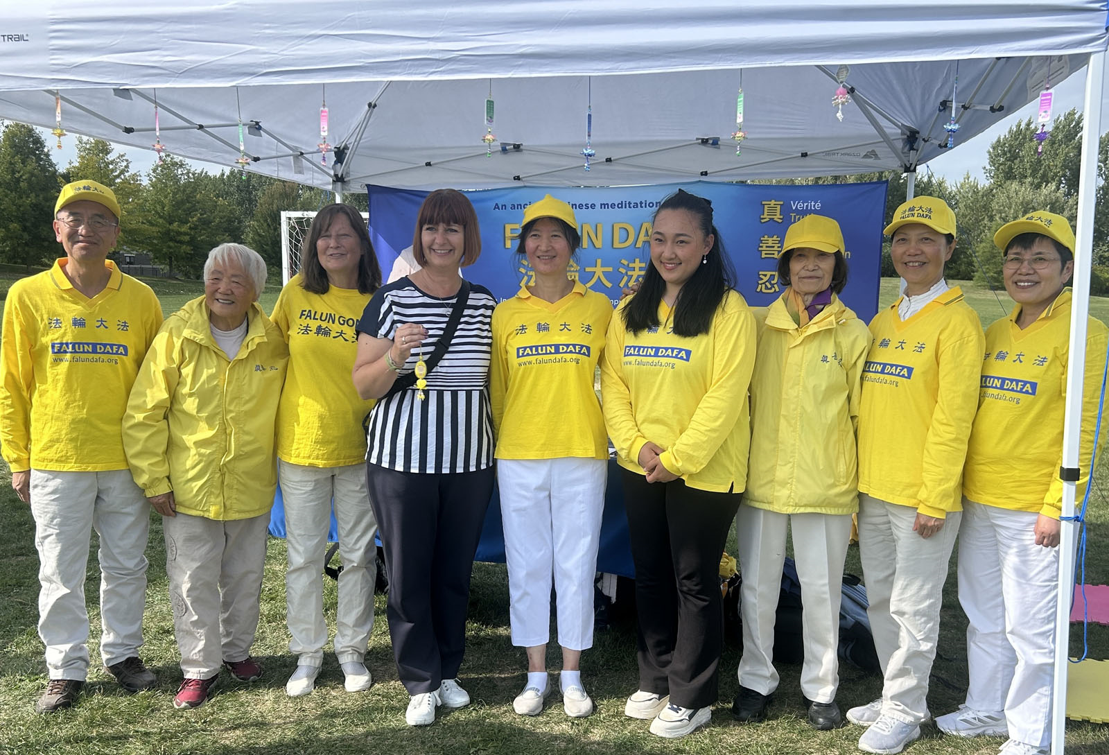 活動當天,法輪功學員演示了五套功法,吸引眾多觀眾駐足觀賞。對於法輪功團體的參與,拉朗德表示:「他們(法輪功學員)絕對是我們社區的一部份。」她讚賞法輪功所倡導的真、善、忍理念,並稱這些理念是所有加拿大人都需堅守的普世價值。