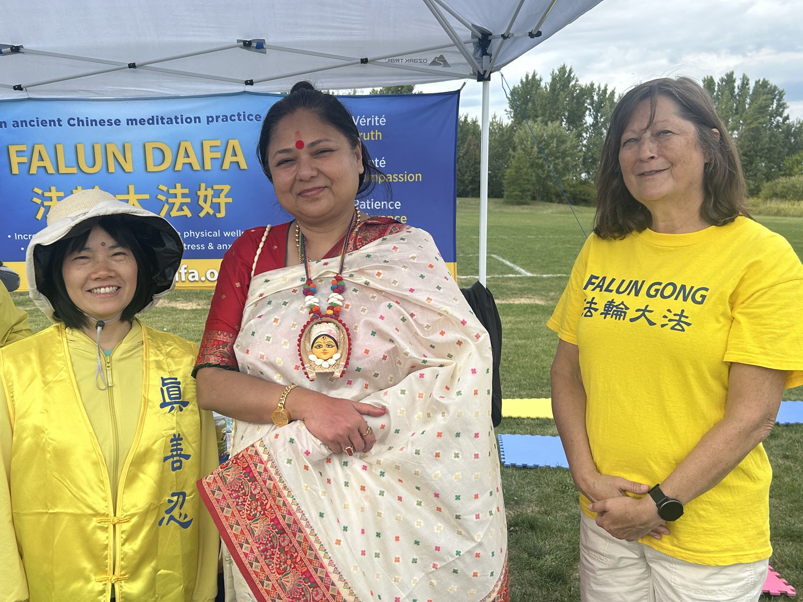 來自印度的教育家與企業家戈什(Gipsy Ghosh)也在活動中分享了她對法輪功的看法。她認為打坐是一種與自然及宇宙連結的方式,能提升靈性與健康。她表示:「真、善、忍不僅屬於加拿大,而是屬於整個地球。」