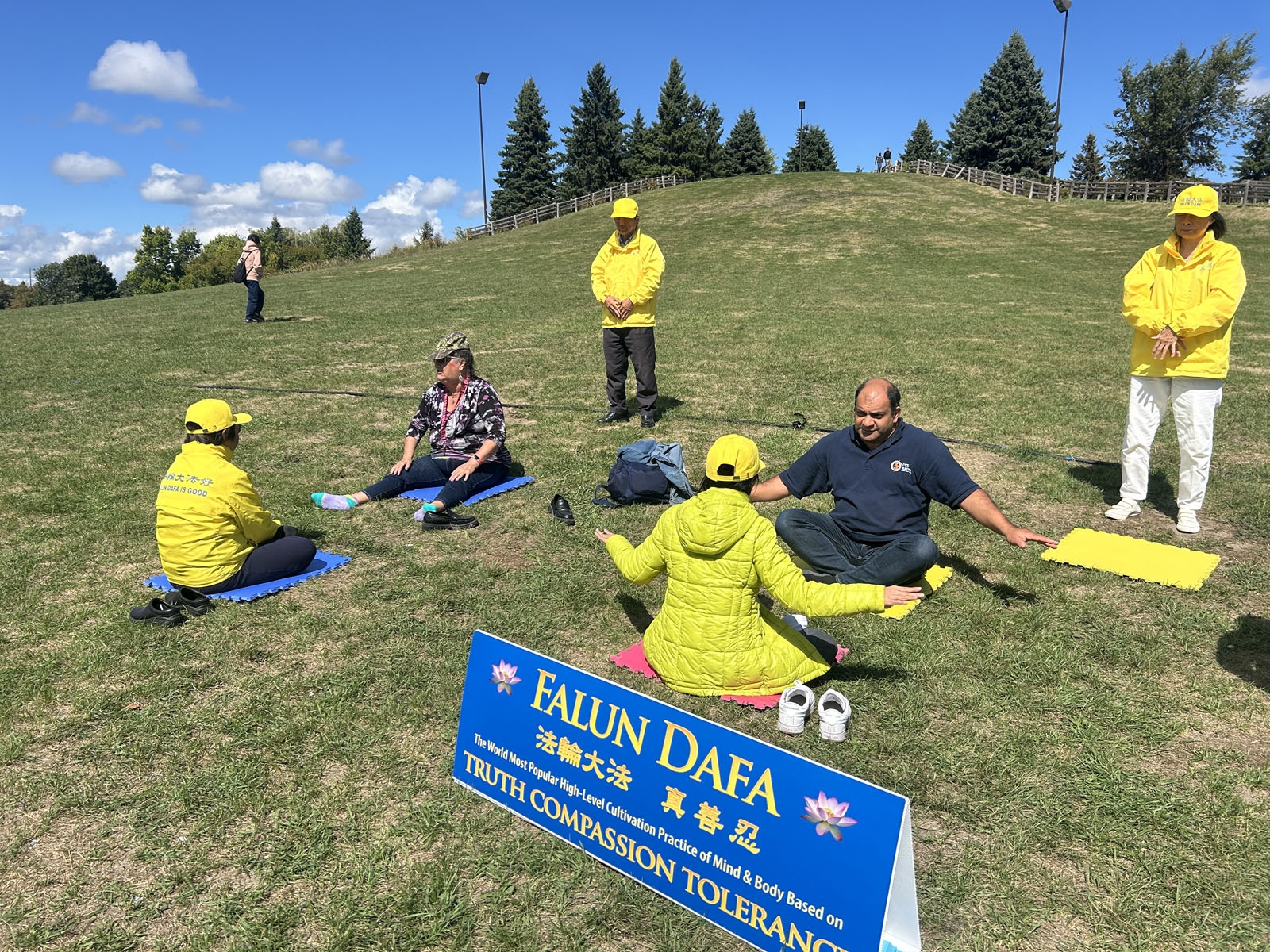 九月七日,在渥太華西部卡納塔(Kanata)社區舉辦的文化節上,法輪功學員同樣受到居民歡迎。電力工人兼企業主赫賈齊(Ali Hejazi)首次學功後表示,打坐讓他感受到身體與心靈的變化,並激發了深入修煉的渴望。