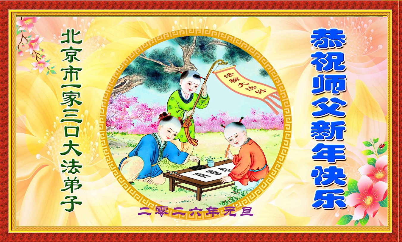 北京大法弟子三姐妹攜全家祖孫三代敬上