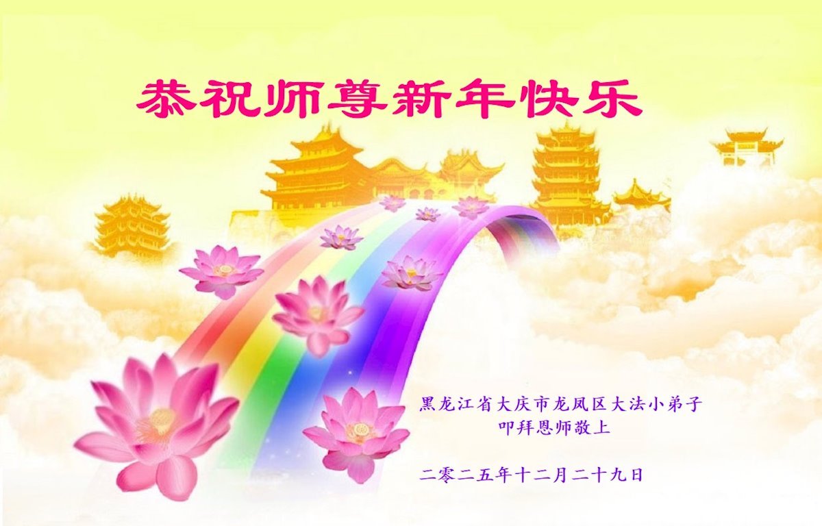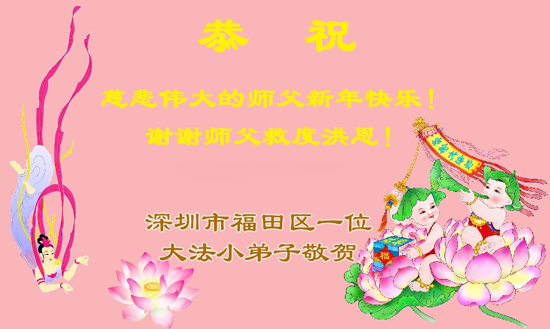 弟子及家人恭祝師尊新年好,叩謝師尊慈悲救度,讓曾經的大法小弟子走回修煉中。弟子一定精進實修,跟上正法進程,圓滿隨師還。