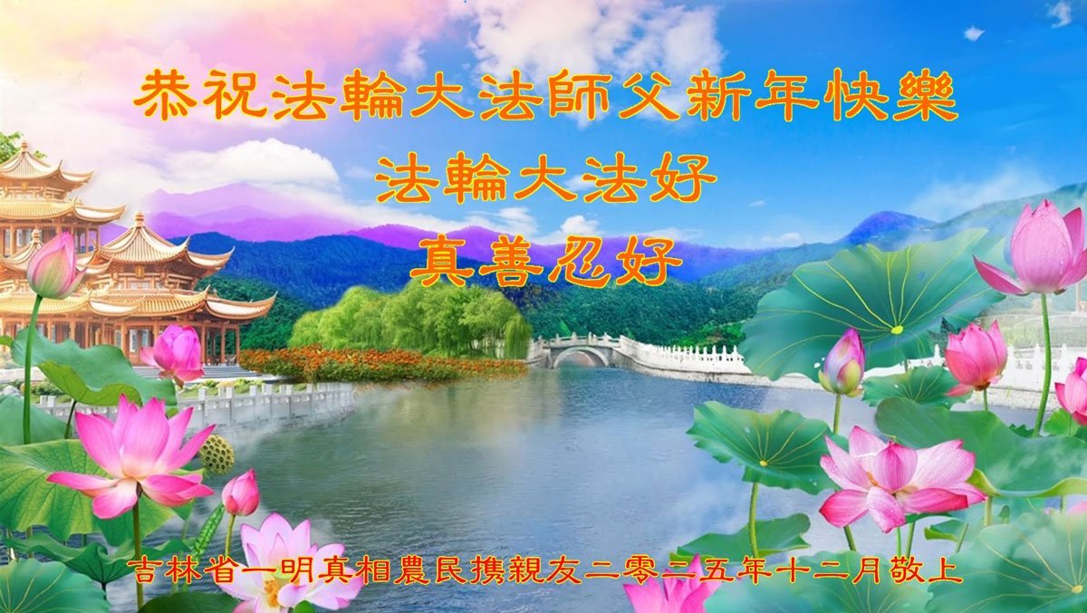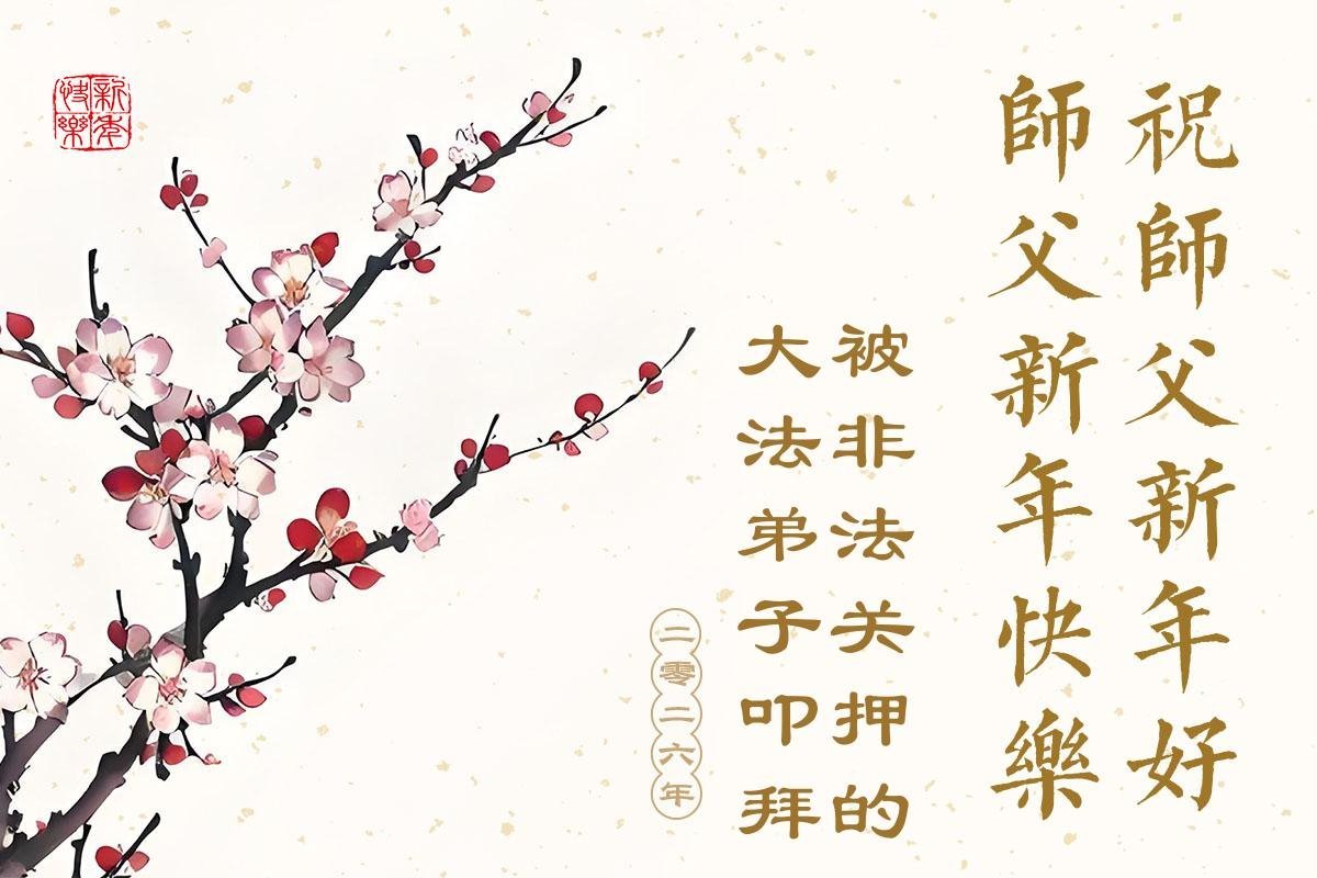 新歲來臨,弟子代表家人及黑窩中的大法弟子恭祝師尊新年好!我丈夫在獄中前幾日突然發病(後好轉),弟子知道是師父救了他,感謝師尊的慈悲,時刻守護著我們。我要做師尊的真修弟子,這顆心從未改變過。新的一年要繼續做好三件事,整體配合好營救同修,做好我們該做的。