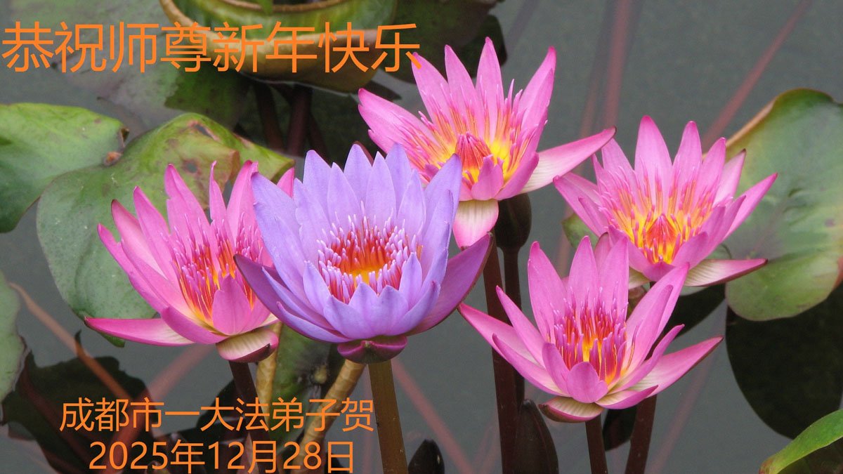 我們是成都一家庭大法弟子,2026元旦來臨,我們大家恭祝慈悲偉大的師尊元旦快樂!我們相信現在的魔難會讓我們更加清醒理智的走好今後的路!