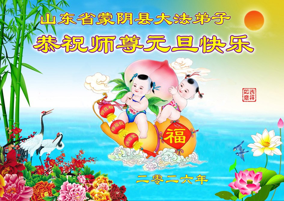 山東省臨沂市蒙陰縣學法小組大法弟子恭祝師尊元旦快樂!