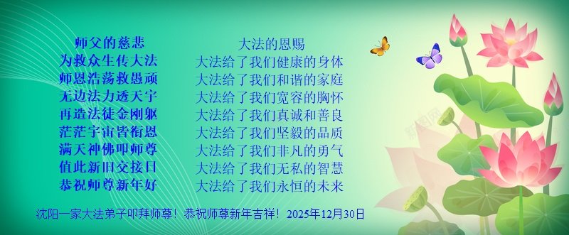 瀋陽一家大法弟子叩拜師尊!恭祝師尊新年快樂!