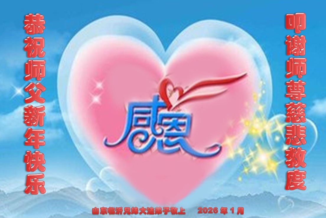 師尊您為眾生吃盡了苦,操盡了心,您辛苦了!弟子感恩師尊的洪恩,無法用人類的語言表達。在新的一年裏,弟子一定要學好法,修好自己,做好三件事,兌現誓約。跪謝師尊!