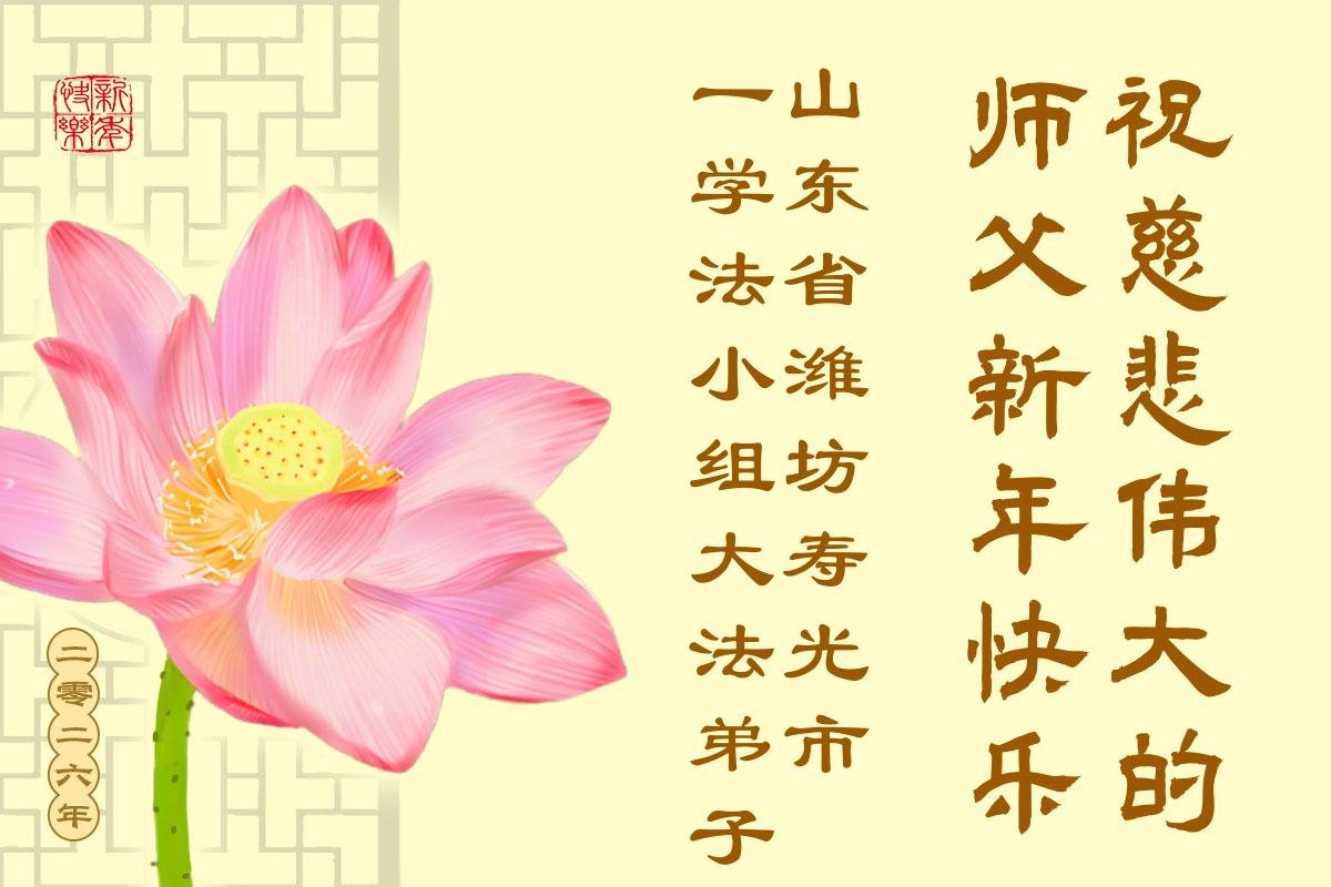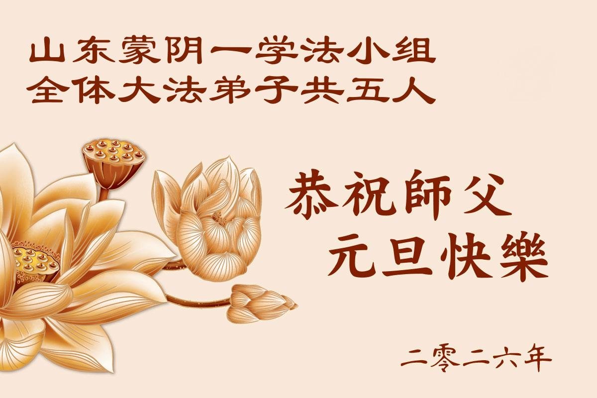 在新的一年即將到來之際,我們學法小組全體同修遙祝師尊元旦快樂!師尊您辛苦了!您為眾生的付出太多、太多了!敬請師尊放心:弟子們一定做好三件事,走好助師正法的修煉路,讓師尊多一份欣慰,少一份操勞!謝謝師尊的慈悲苦度!
