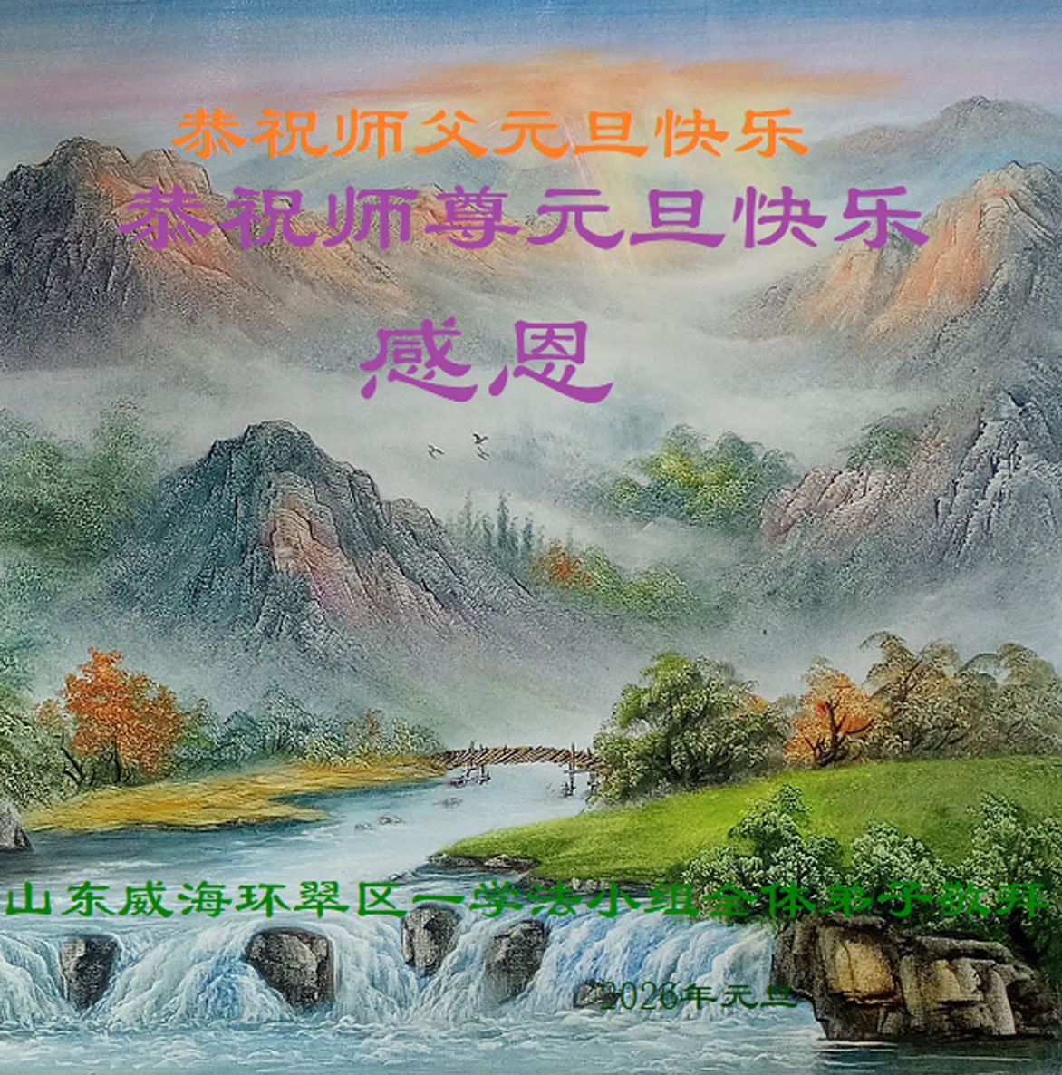 感恩師尊給予我們無比偉大的修煉機緣!新的一年我們努力實修,把證實法、同化法溶入生活中,展現大法弟子的慈悲與正念,讓更多的人看到大法的美好,得救度!謝謝師尊!