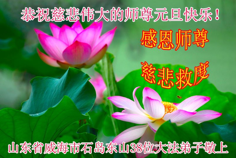 煙台市萊山區大法弟子向師父問好!師父新年好!新年快樂!