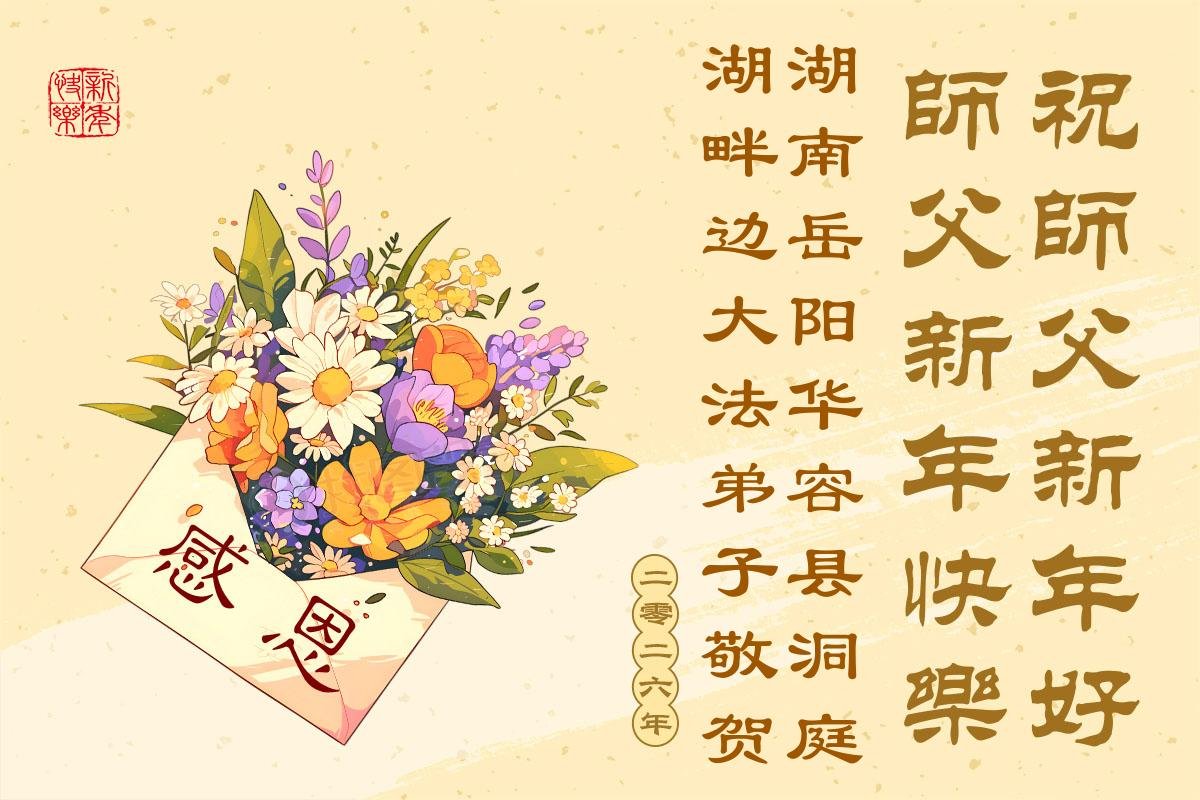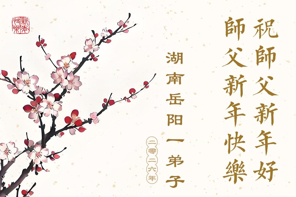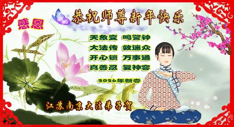 慈悲偉大的師父新年好!用盡人類語言也無法表達弟子對偉大師父的感恩之心。2026新年來臨之際,弟子在此恭祝師父新年快樂!在新的一年,我要徹底清除思想中邪黨文化因素,多救世人,完成助師正法的史前大願。合十