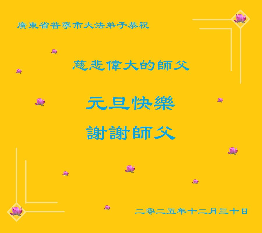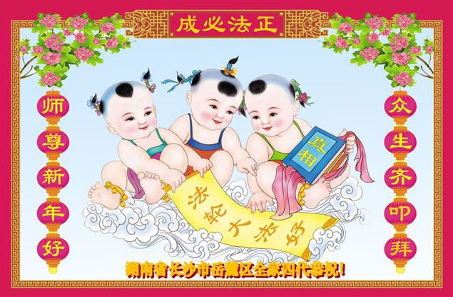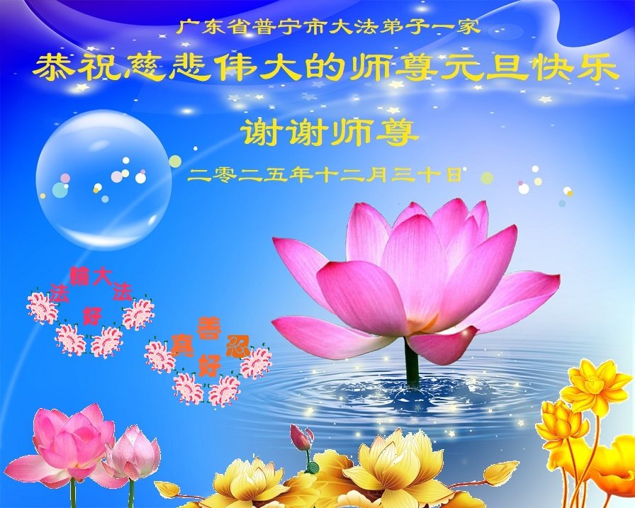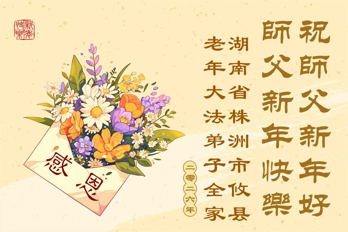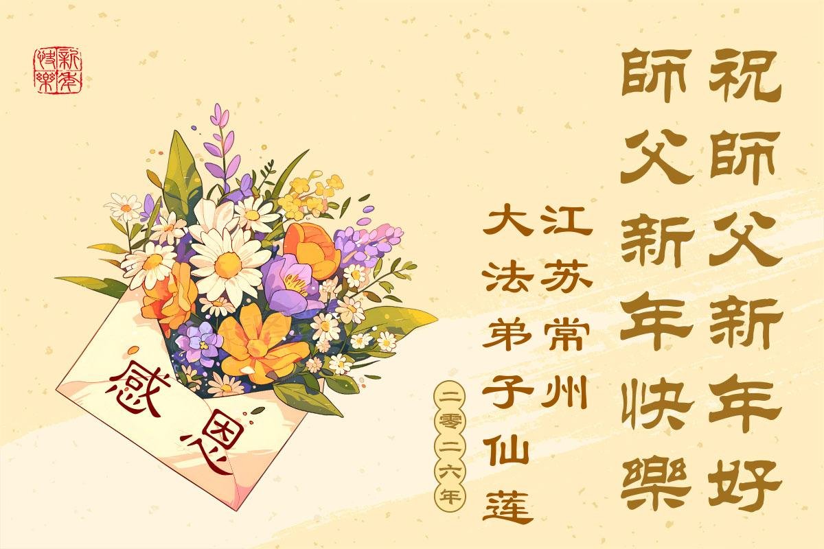 弟子們一定要努力實修,多救人,才能不愧對師尊!也代表明真相得福報的世人表達他們的感恩之心:謝謝大法師父的保祐!祝大法師父新年快樂!