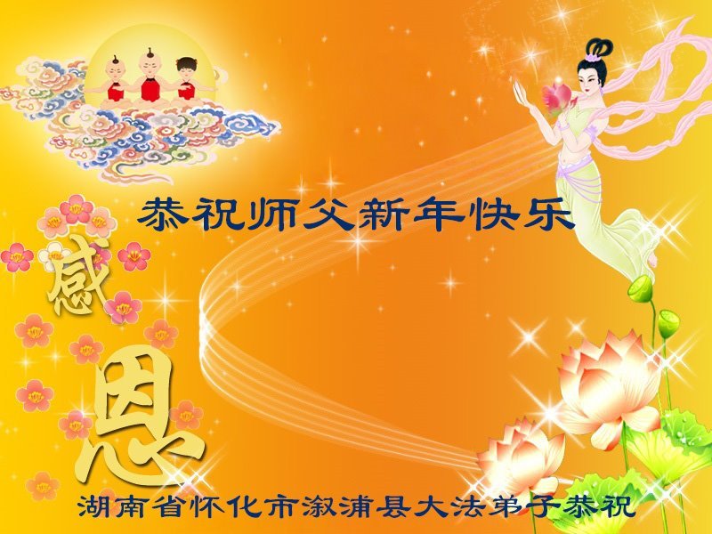恭祝慈悲偉大的師父新年快樂!無限感恩師父的慈悲苦度:「師父,感謝您將大法洪傳,弟子卑微的生命才得以生的希望。感恩無盡言!法輪大法好!真善忍好!弟子叩謝師恩!」
